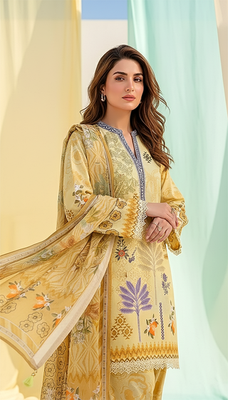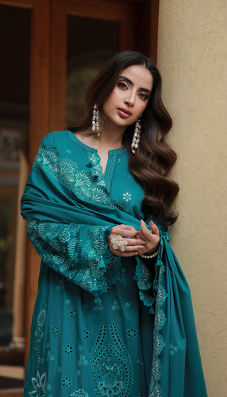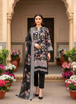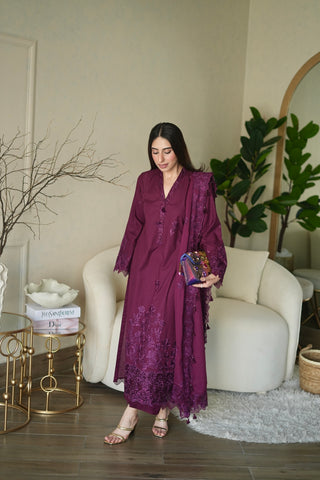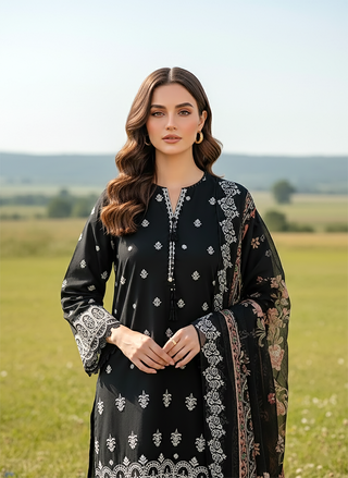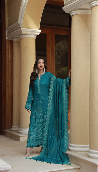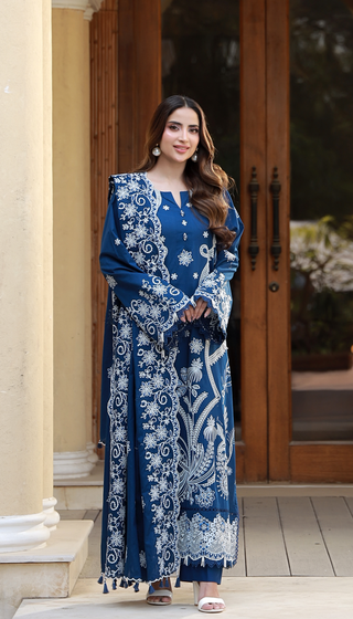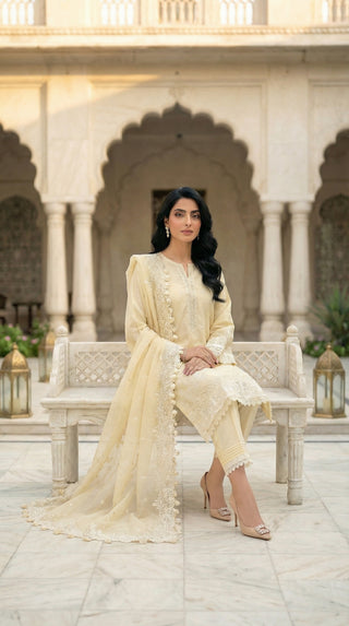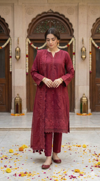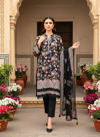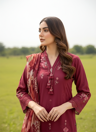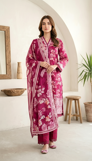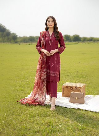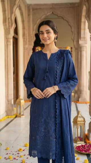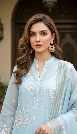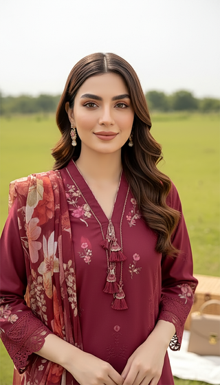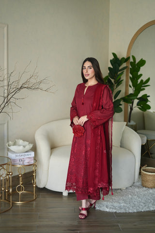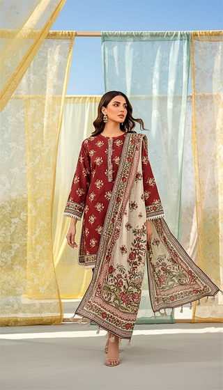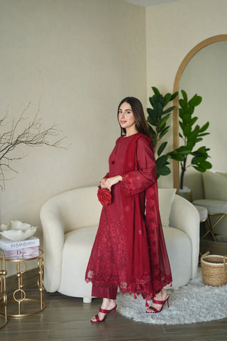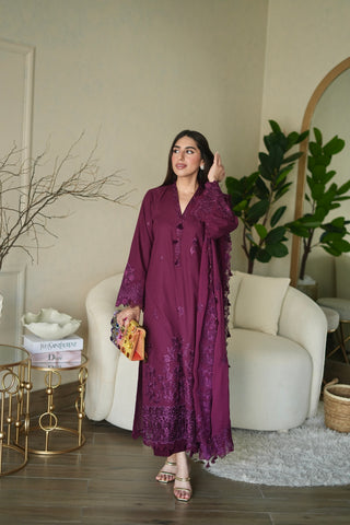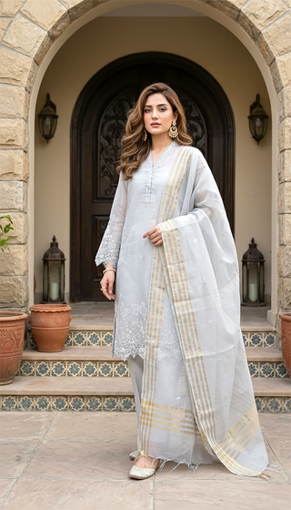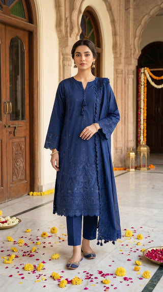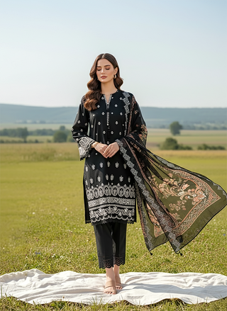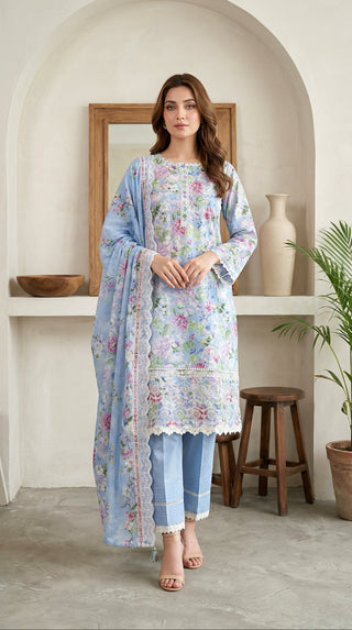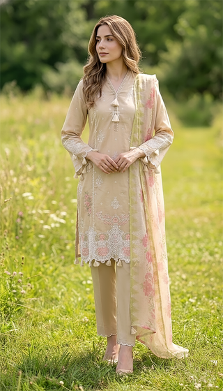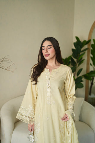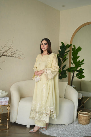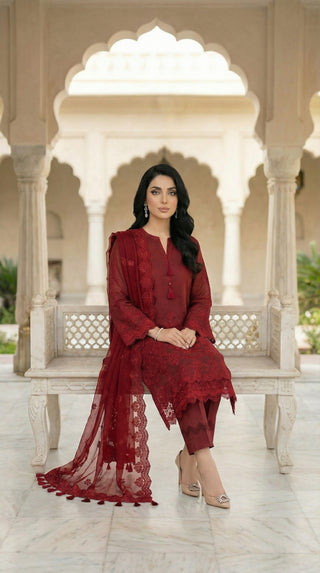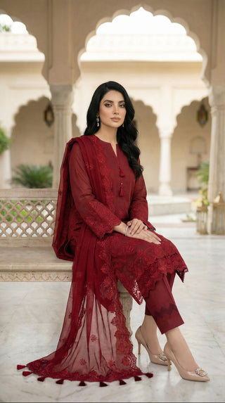 03 Piece Unstitched Embroidered with cutwork embroidered chiffon dupatta
