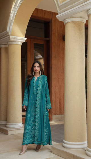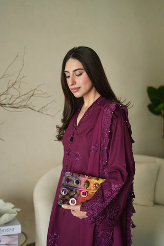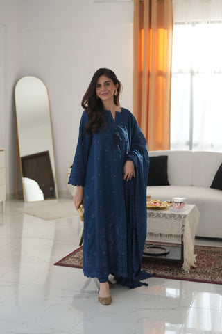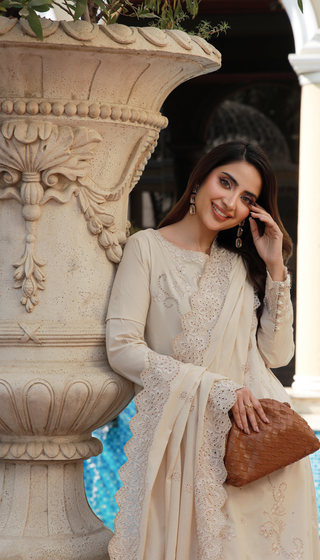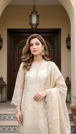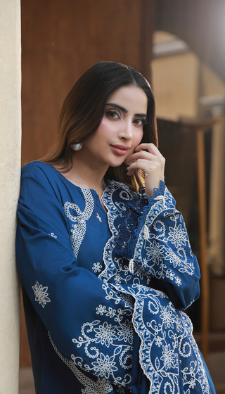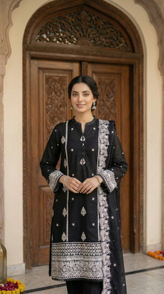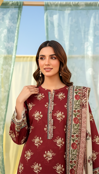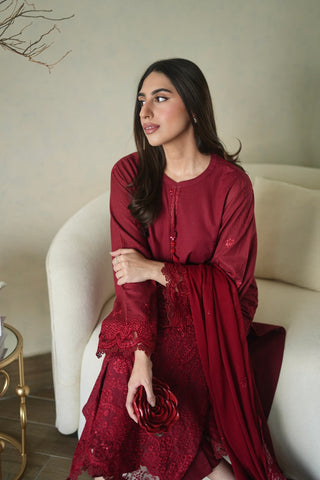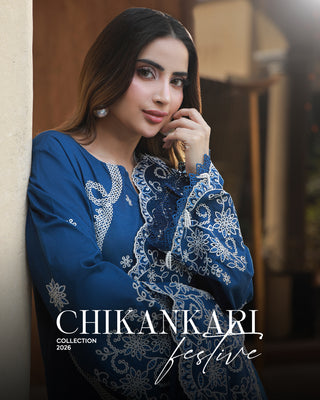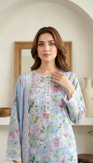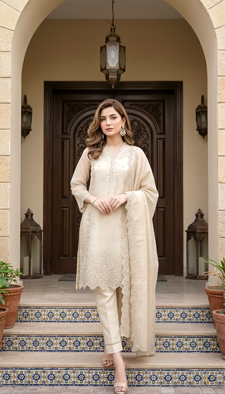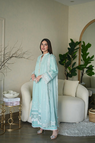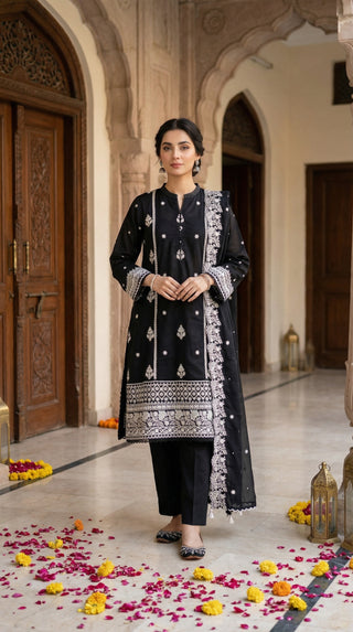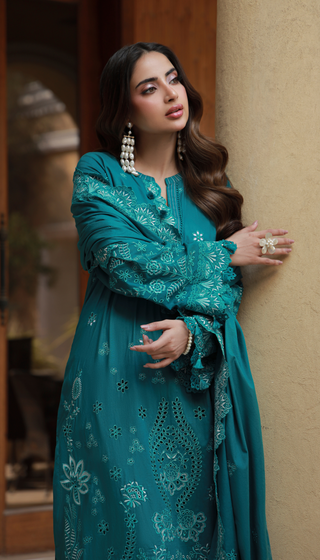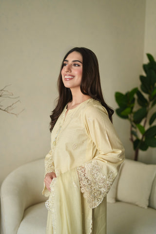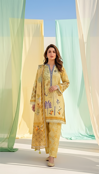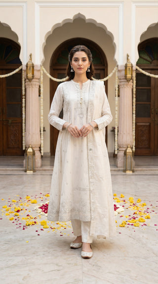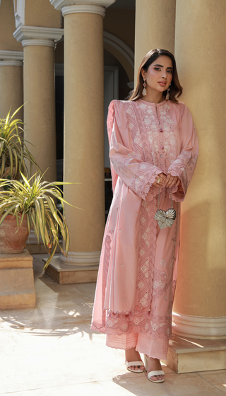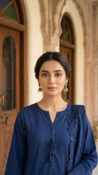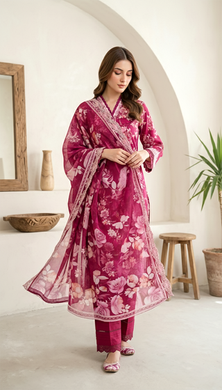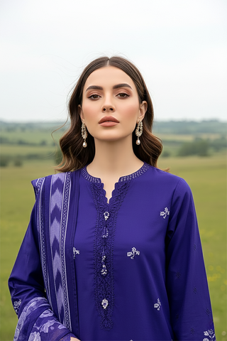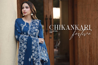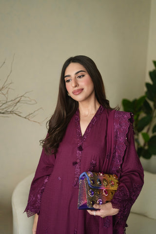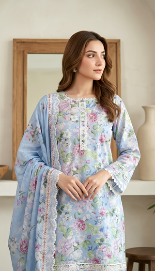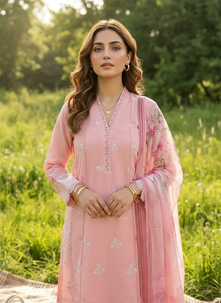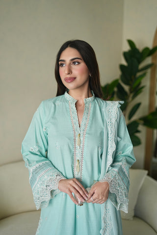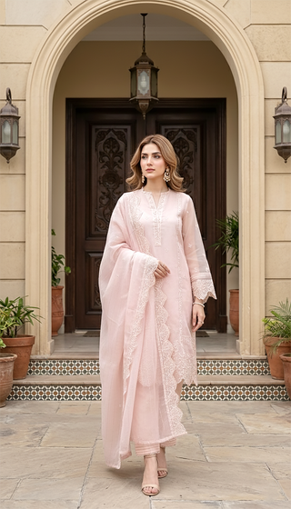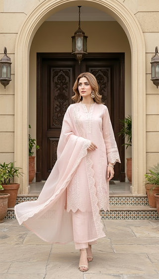 03 Piece Unstitched Embroidered with cutwork embroidered chiffon dupatta