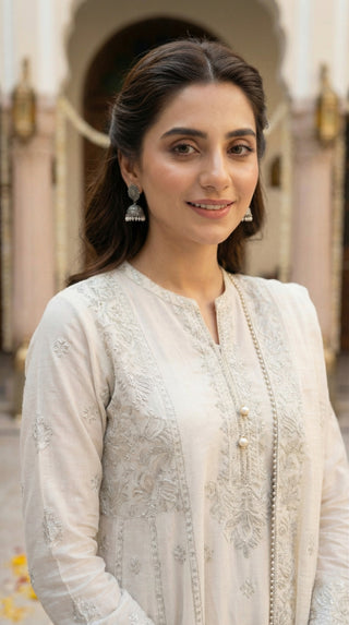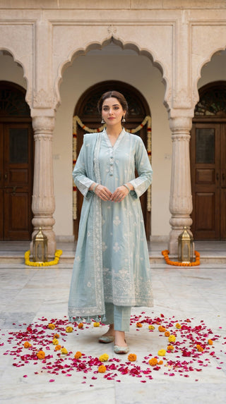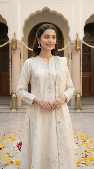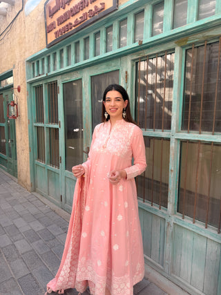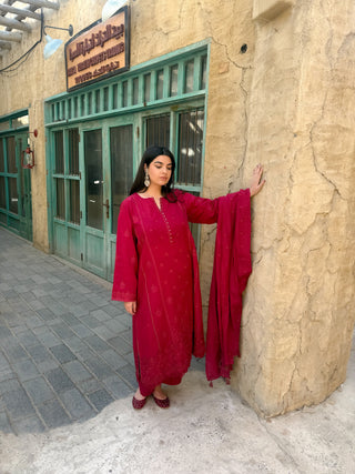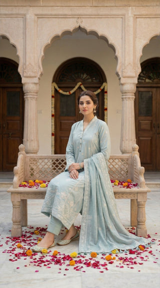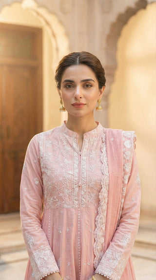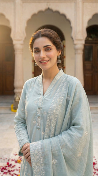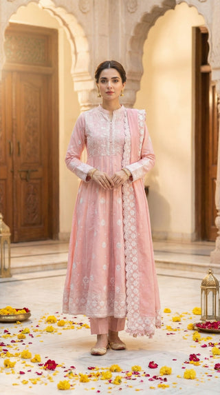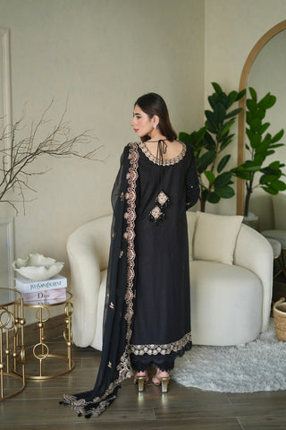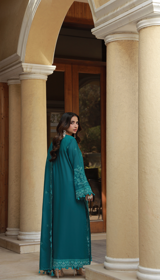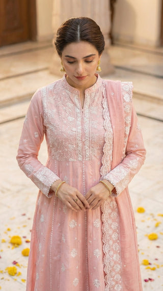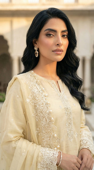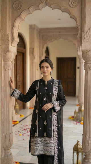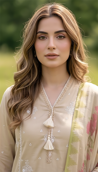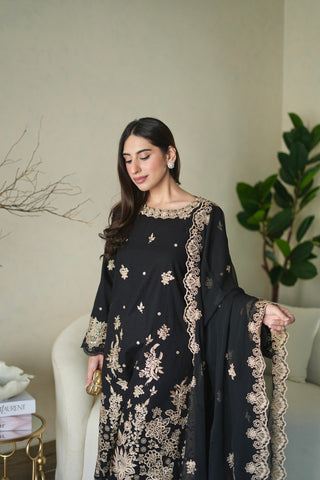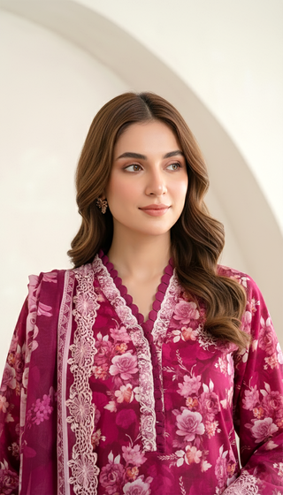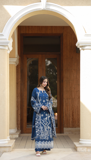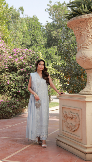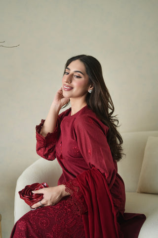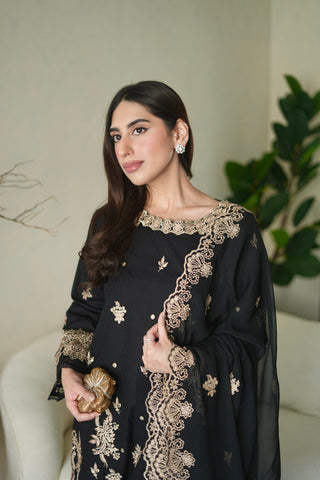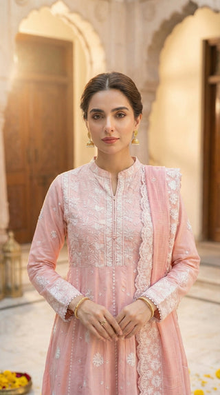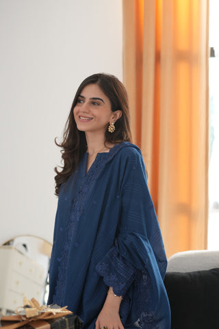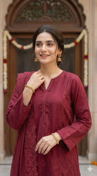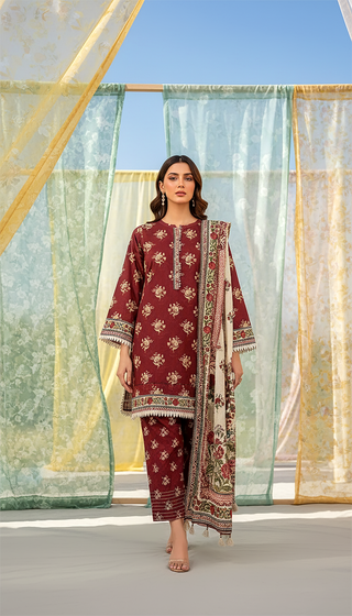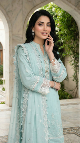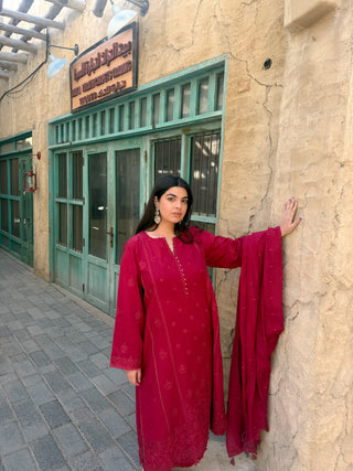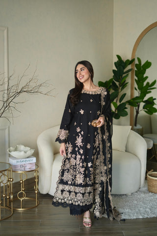 03 Piece Unstitched Embroidered with cutwork embroidered chiffon dupatta