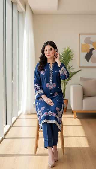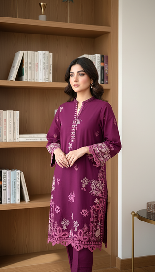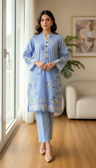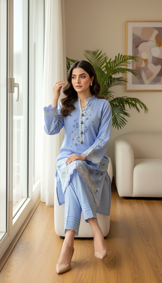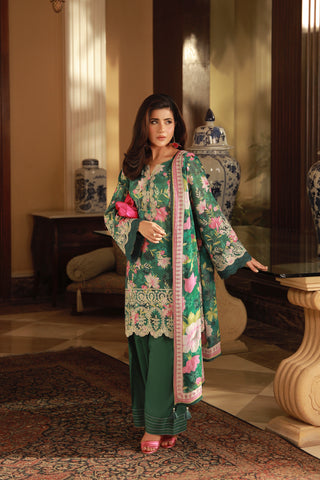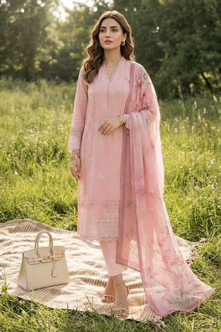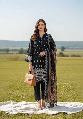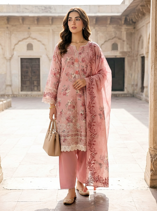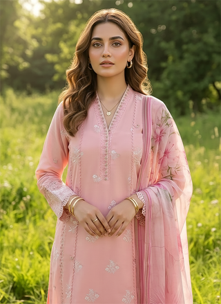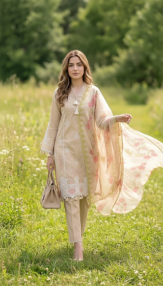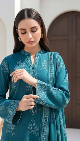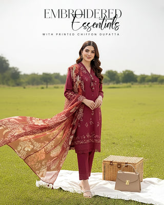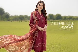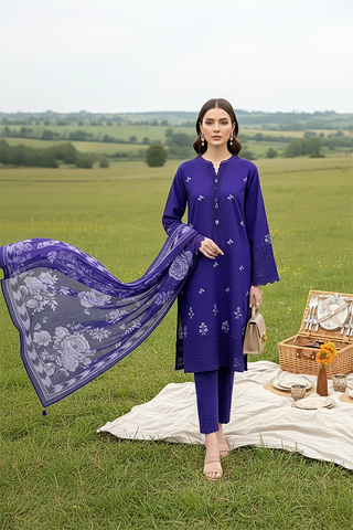 03 Piece Unstitched Embroidered Jacquard With Embroidered Chiffon Dupatta