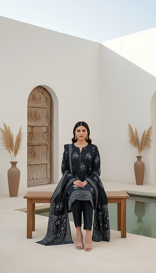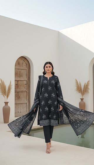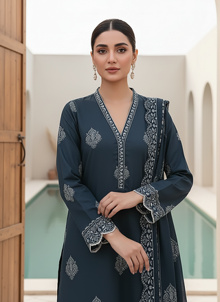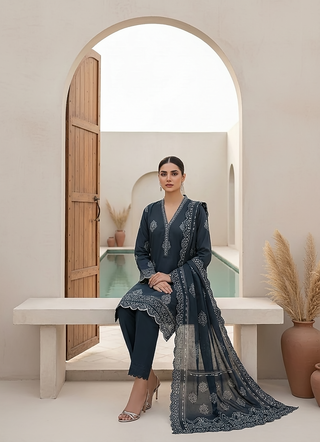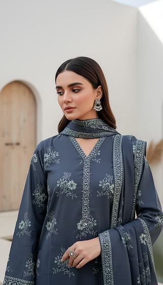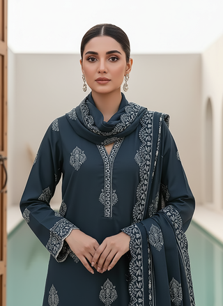 03 Piece Stitched Textured Pearl Printed Marina