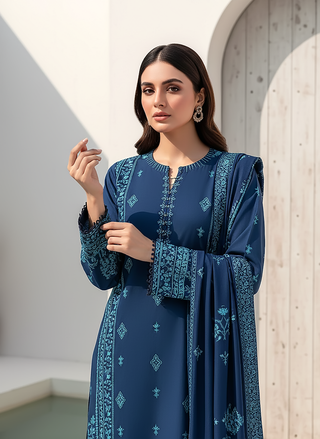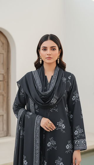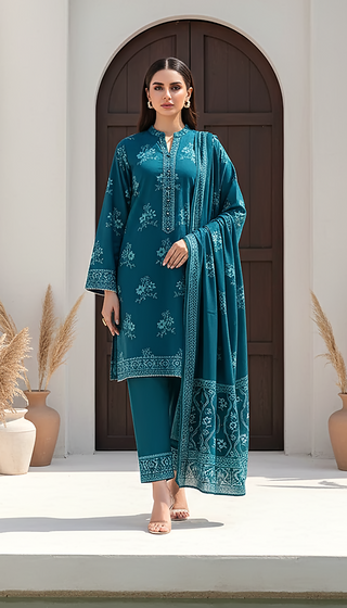 03 Piece Unstitched Pashmina Printed