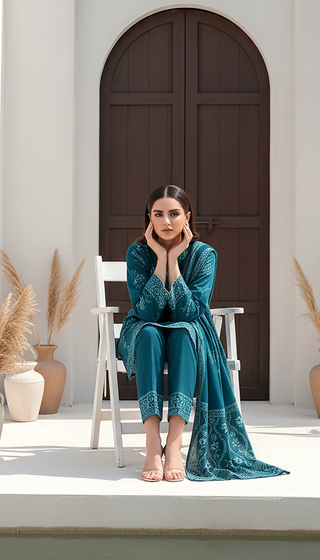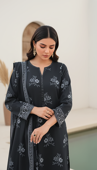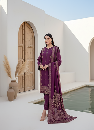 02 Piece Unstitched khaddar embroidered Shirt & Trouser