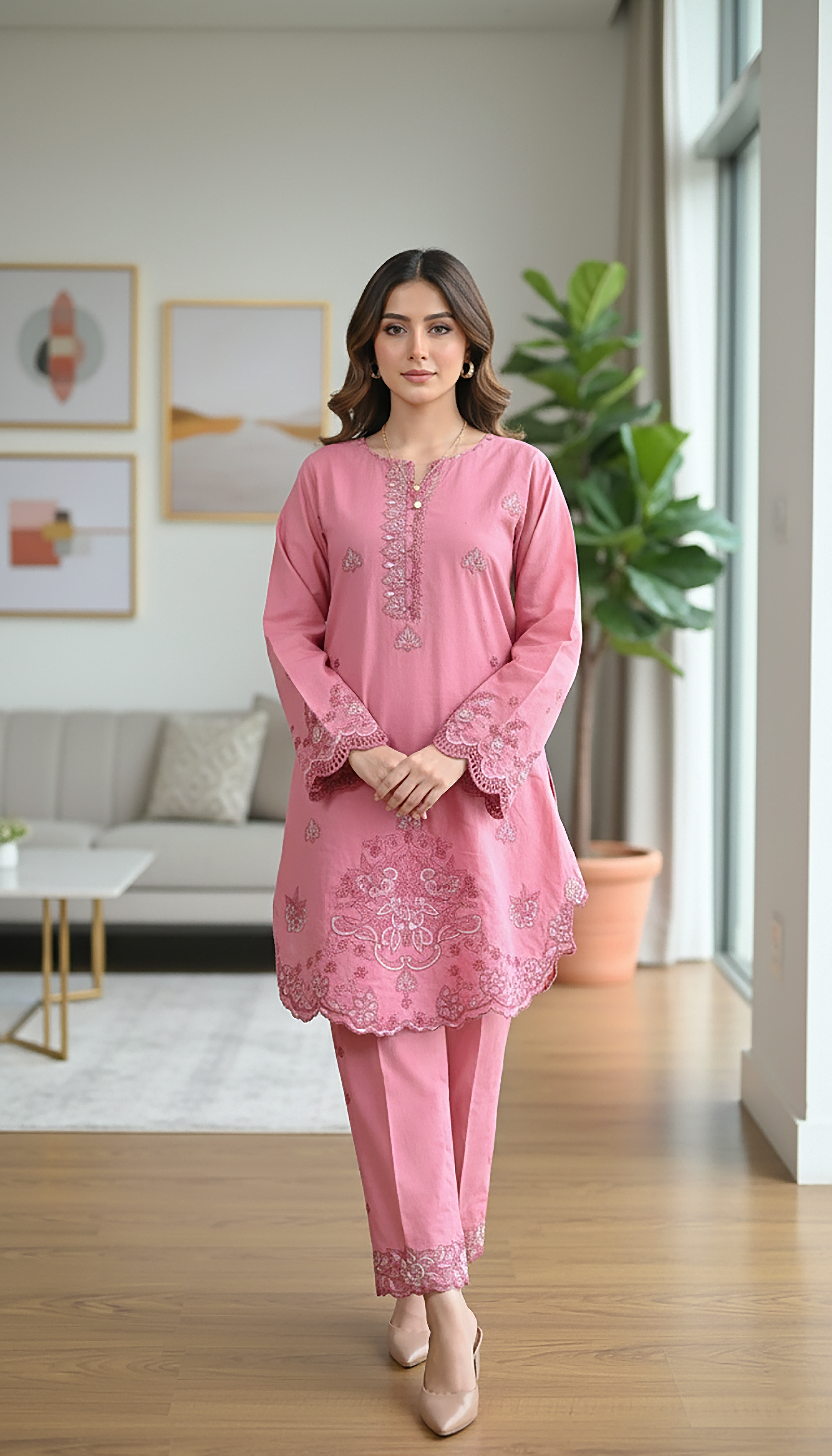 02 Piece Unstitched Embroidered with Shirt & Trouser