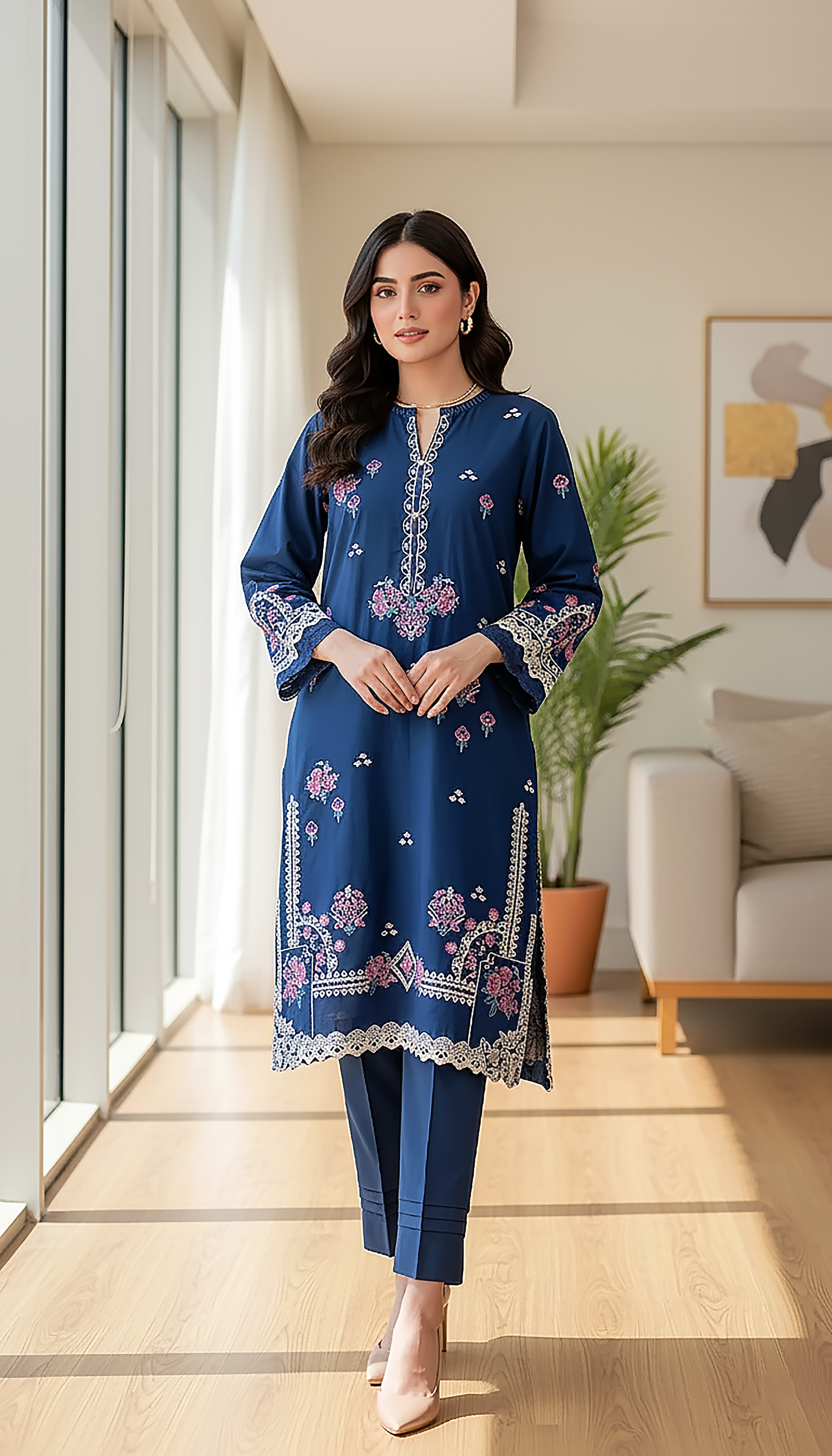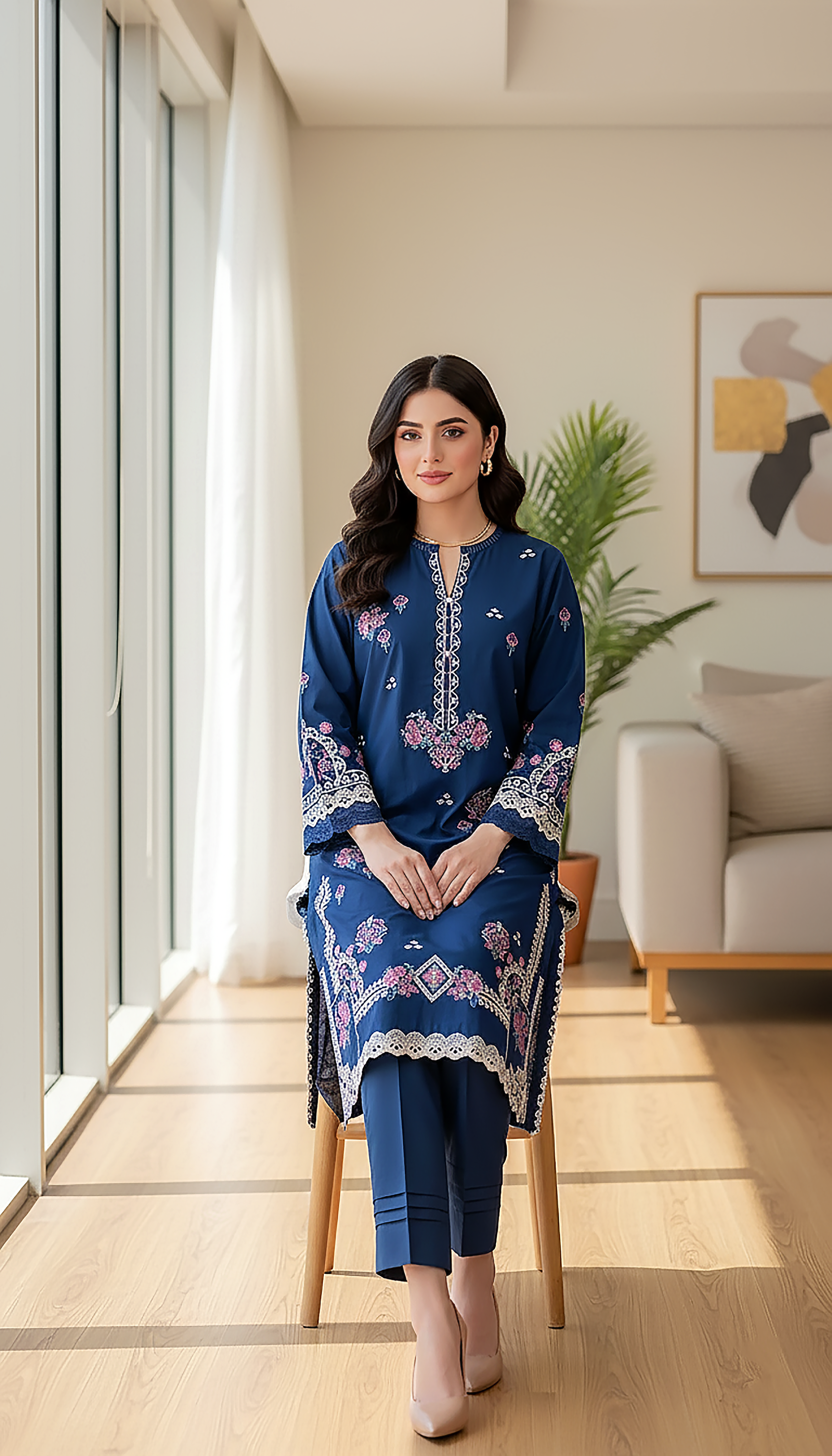 Shirt Front: Dyed EMB Lawn 01 Piece