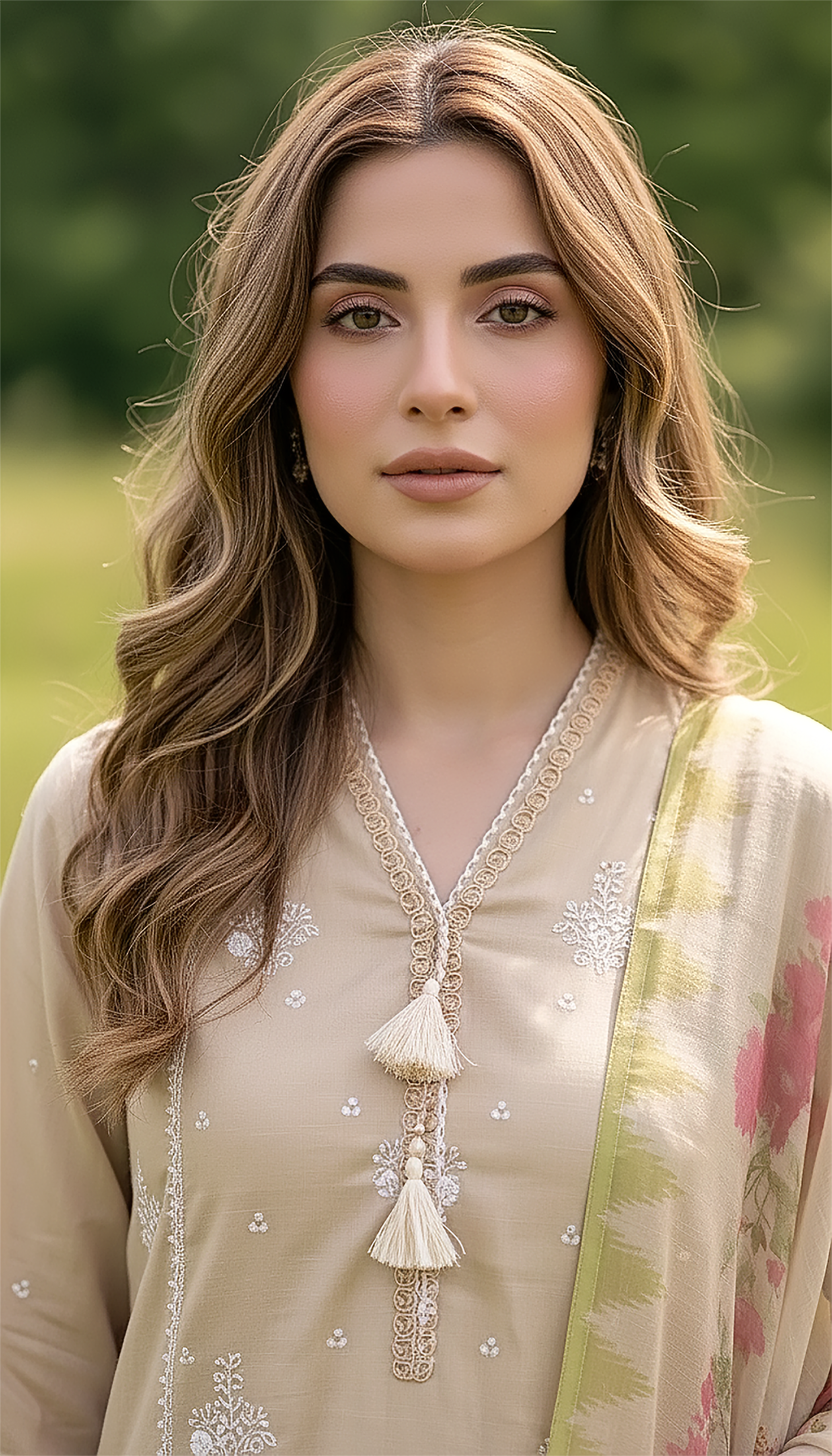 | Shirt Front: | Dyed Emb Lawn 01 Piece |