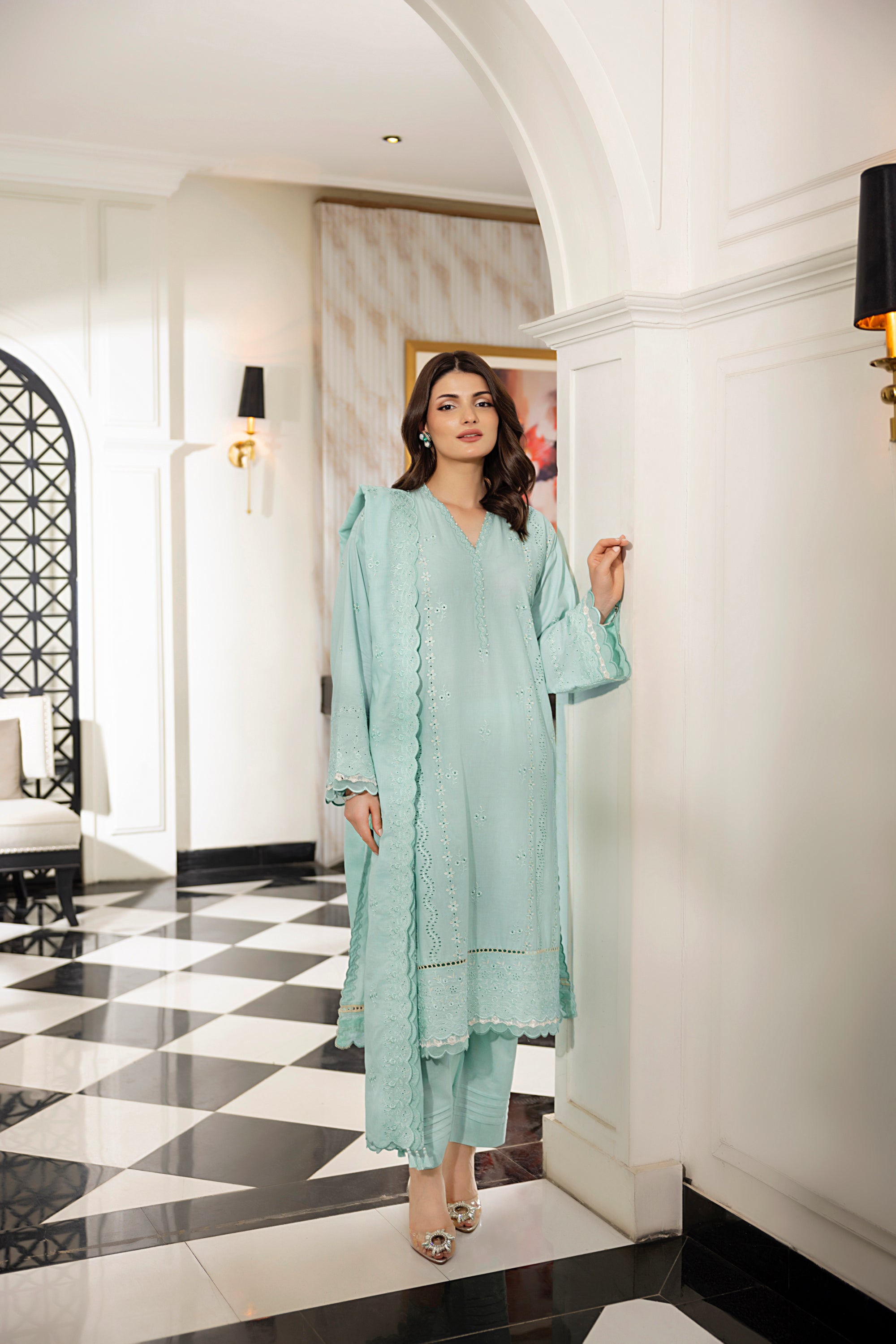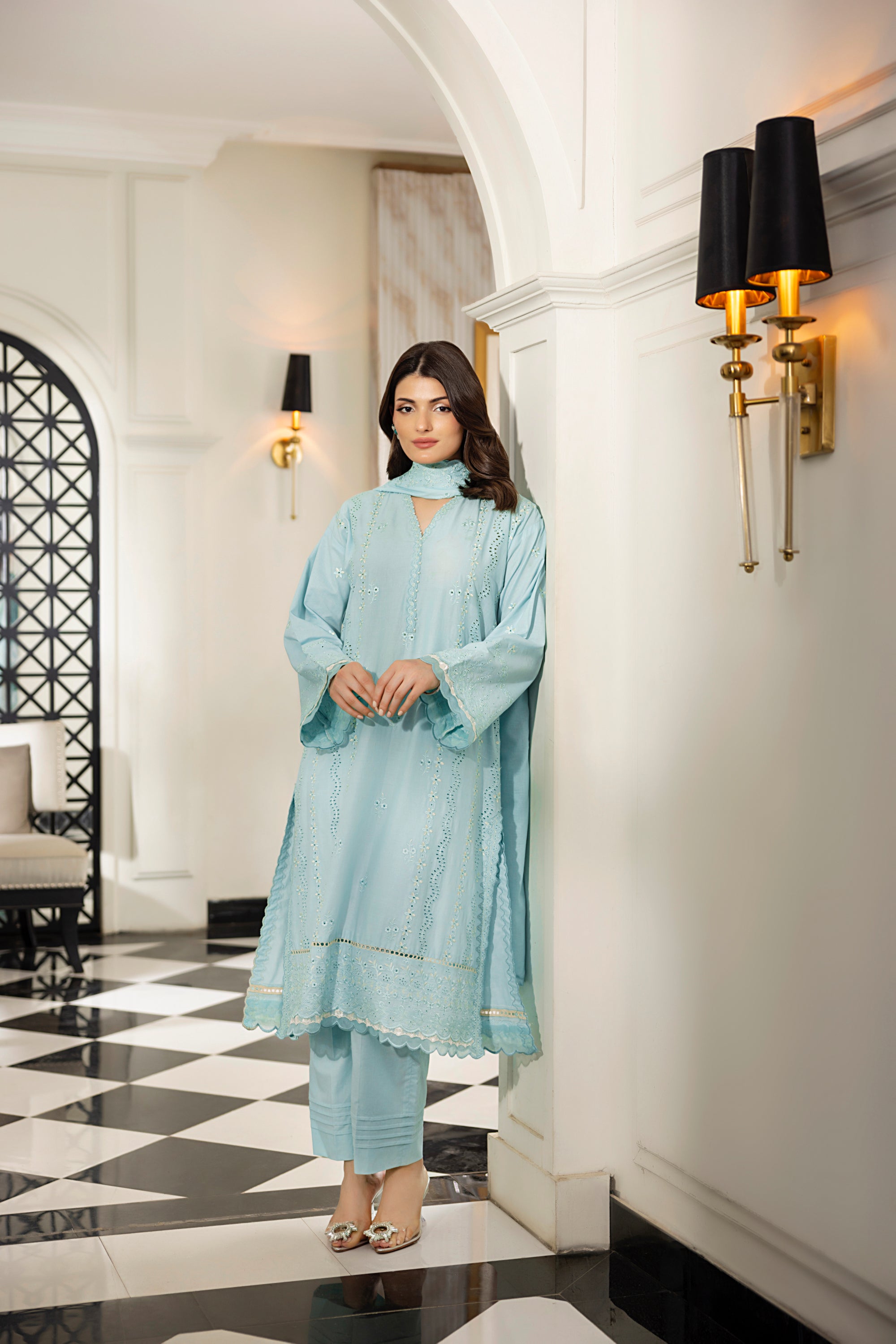 03 Piece Stitched Embroidered With Embroidered Lawn Dupatta