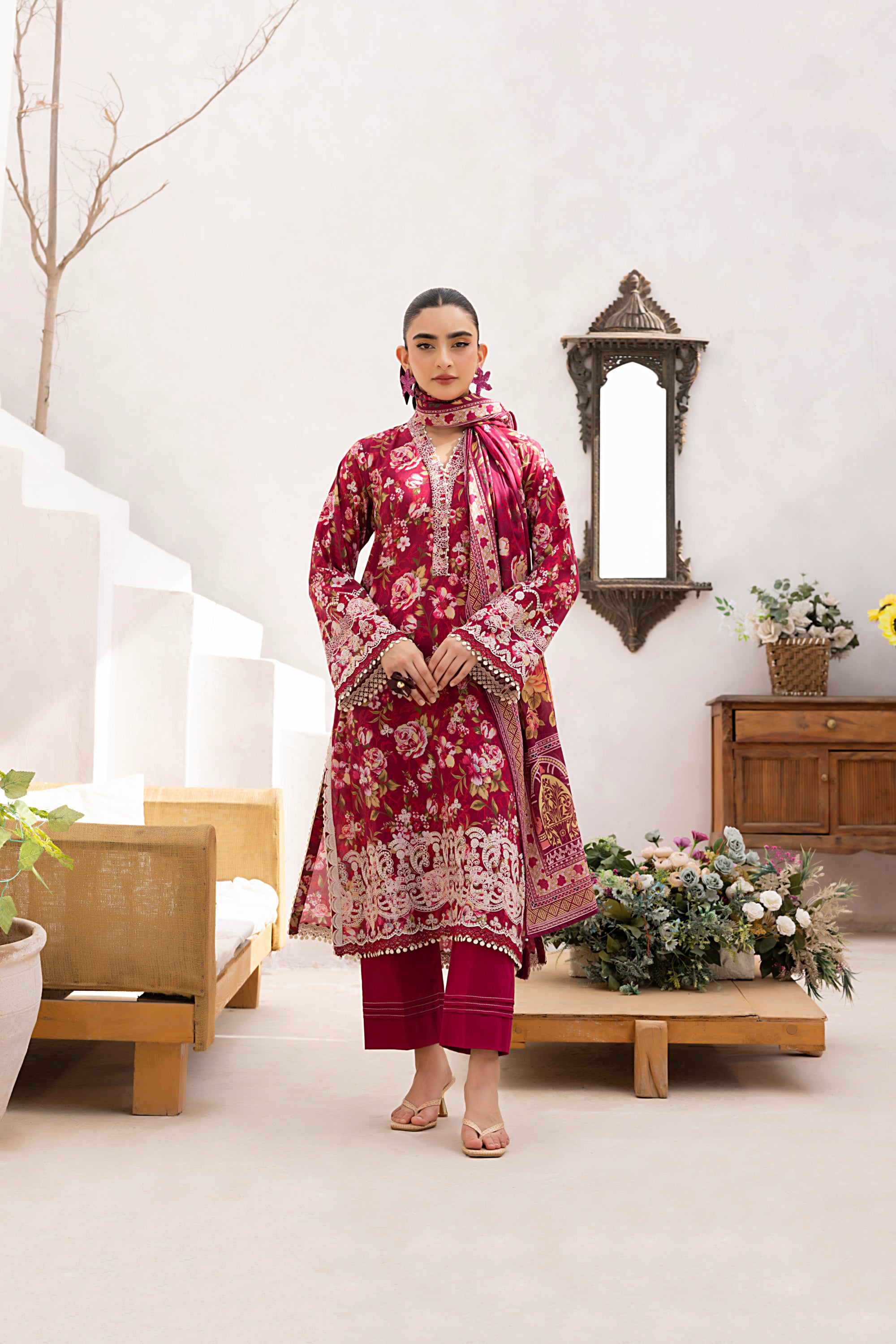 03 Piece Stitched Printed Embroidered with Printed Lawn Dupatta