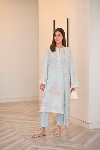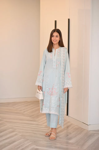 03 Piece Stitched Embroidered With Embroidered Lawn Dupatta