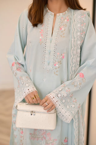03 Piece Stitched Embroidered with Dyed Embroidered Chiffon Dupatta