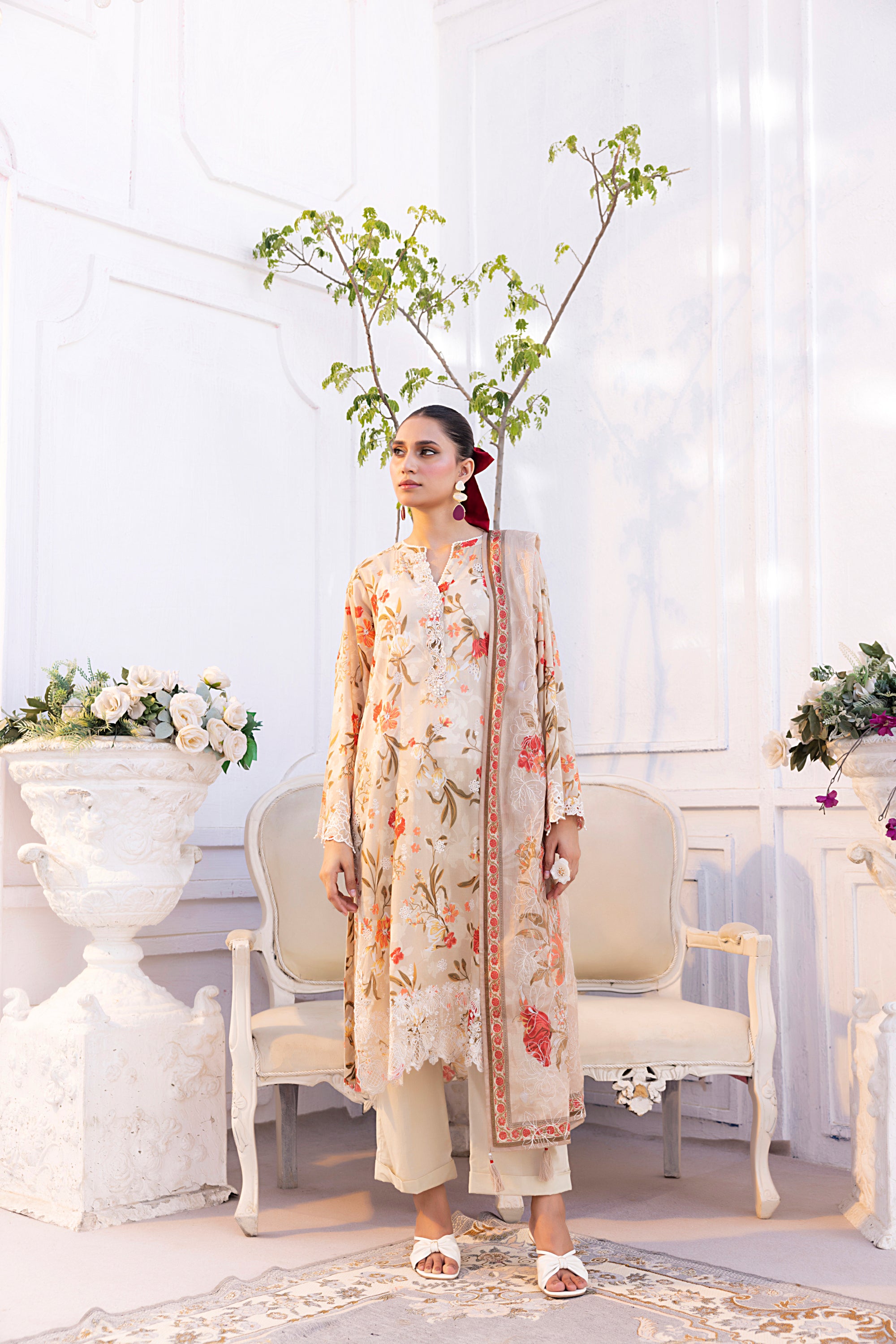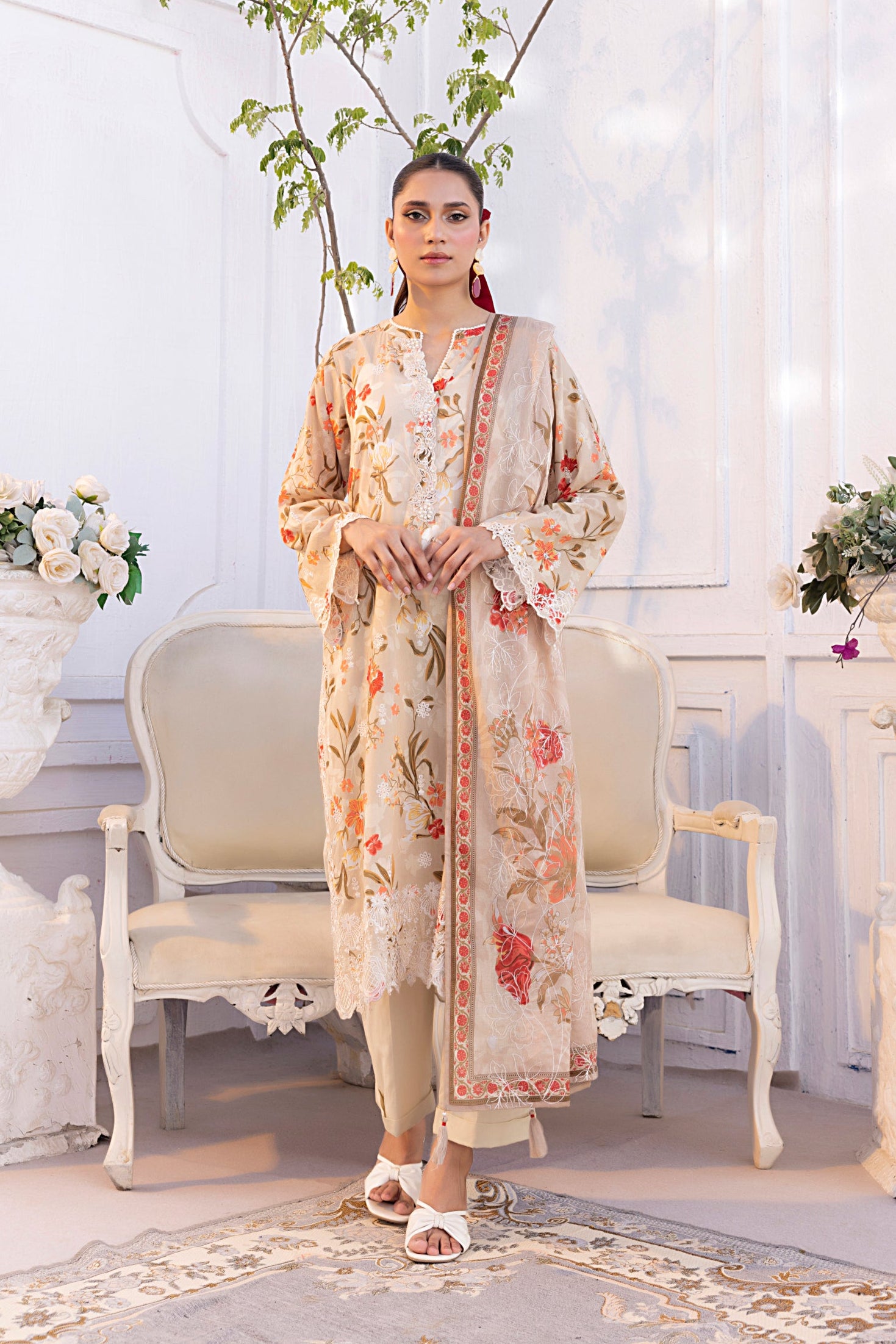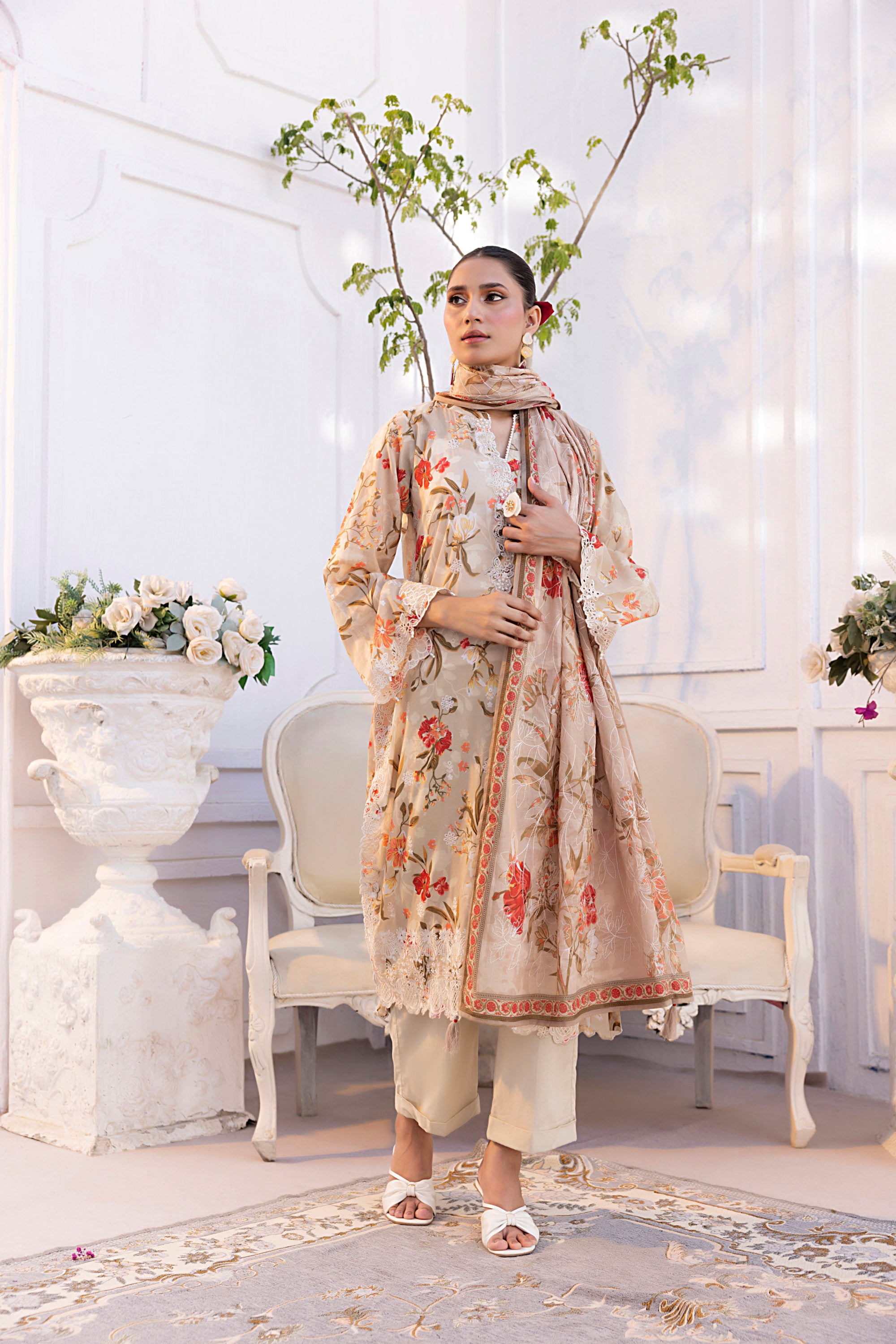 03 Piece Stitched Printed Embroidered with Printed Lawn Dupatta