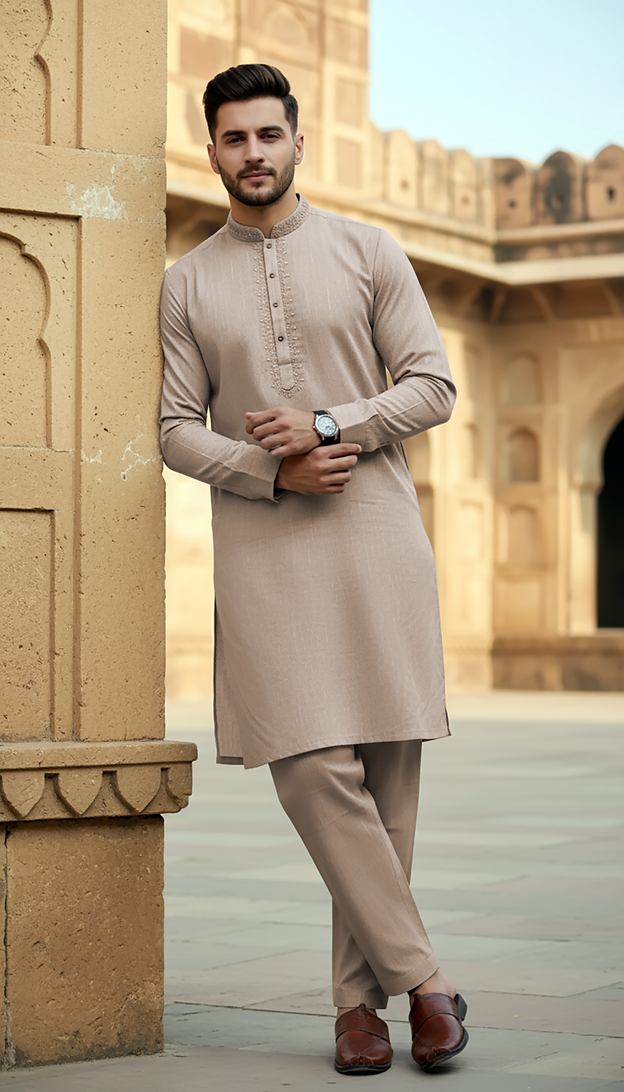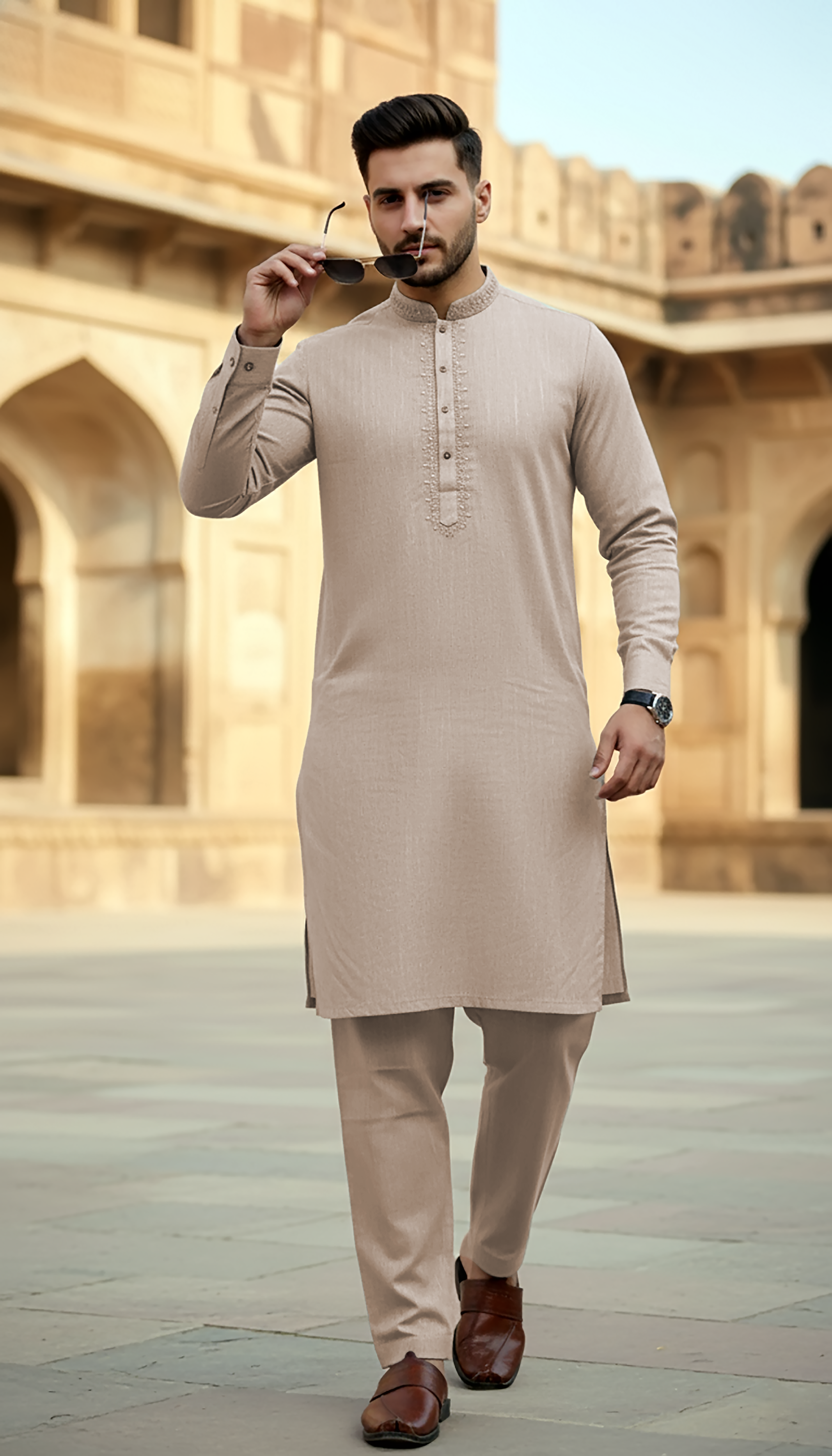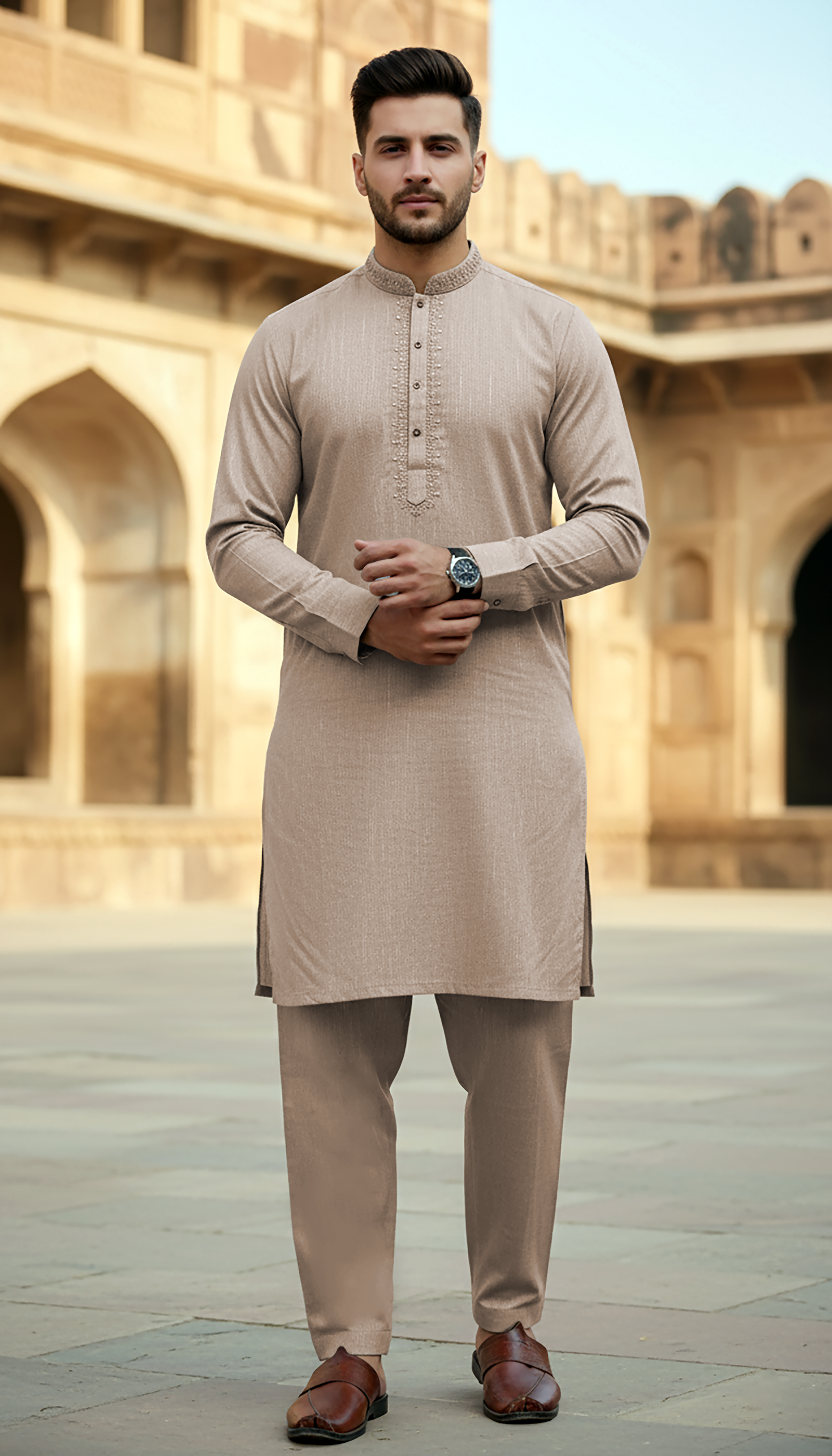 02 Piece Ready to wear Mens Embroidered Shalwar & Kameez