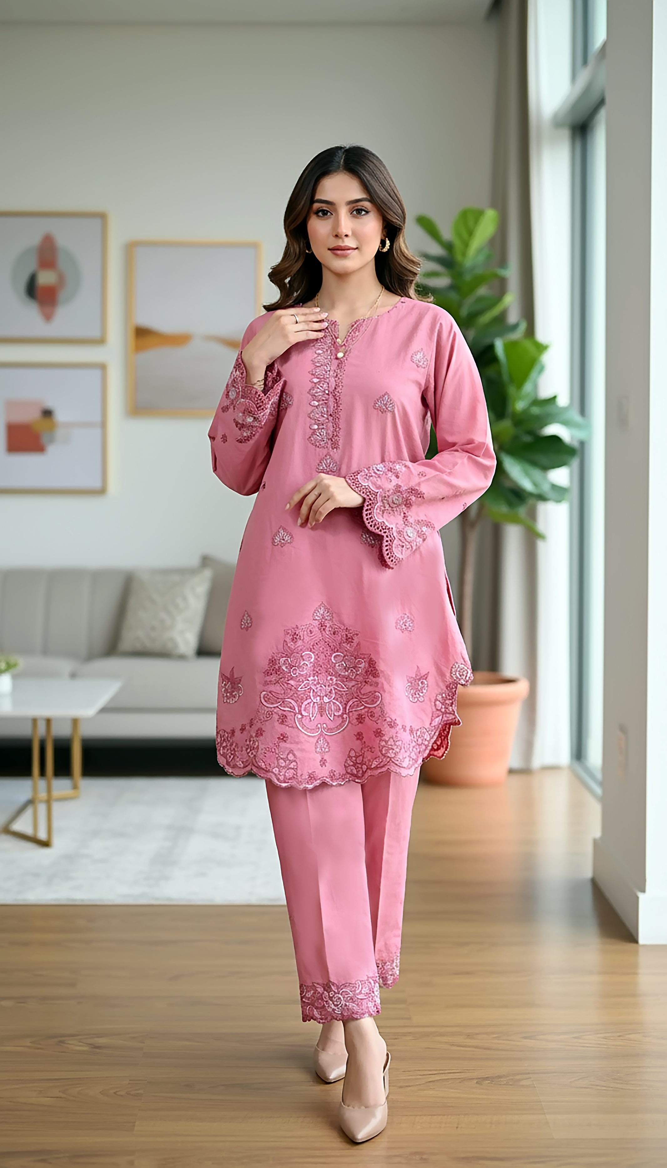 02 Piece Stitched Embroidered With Shirt & Trouser