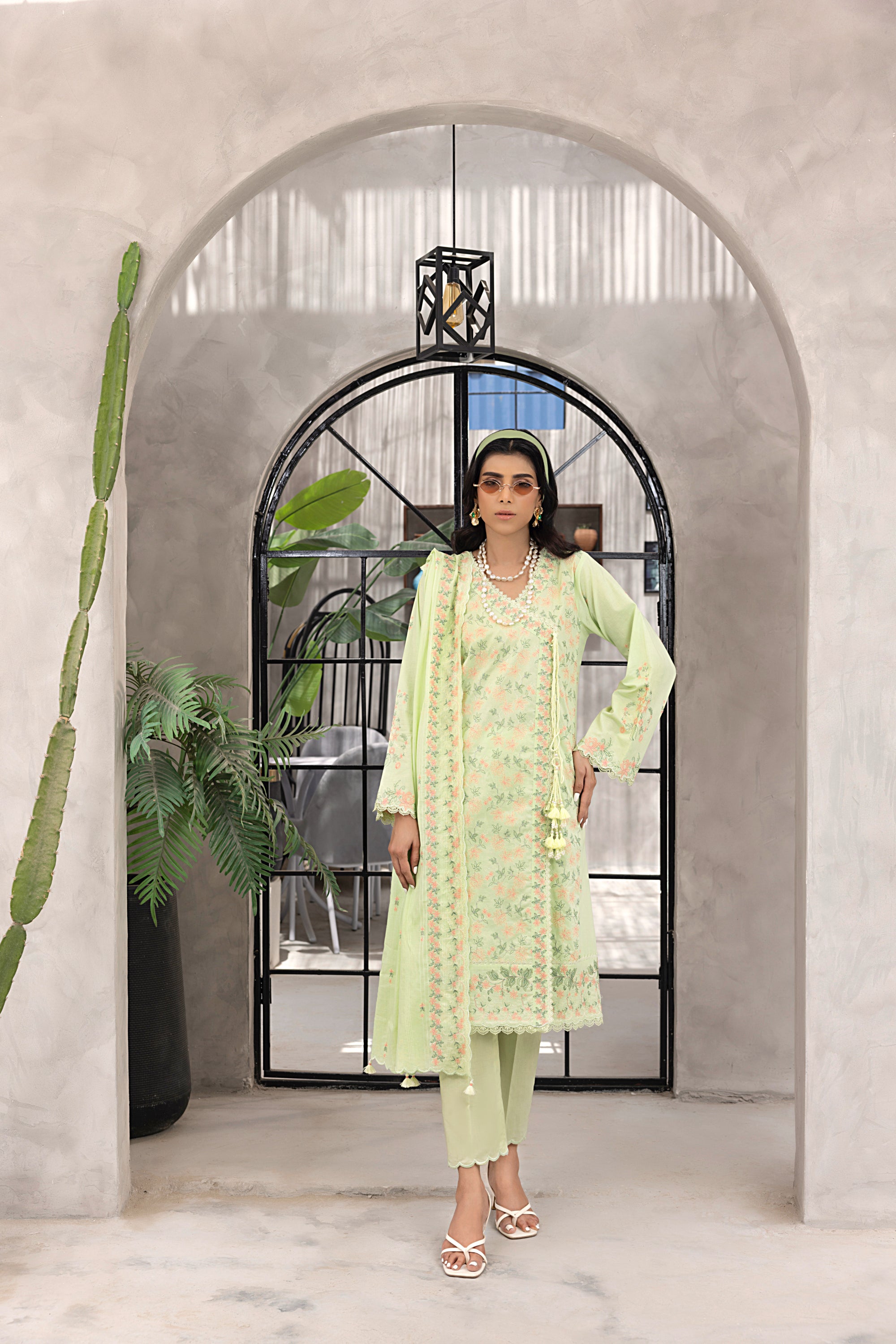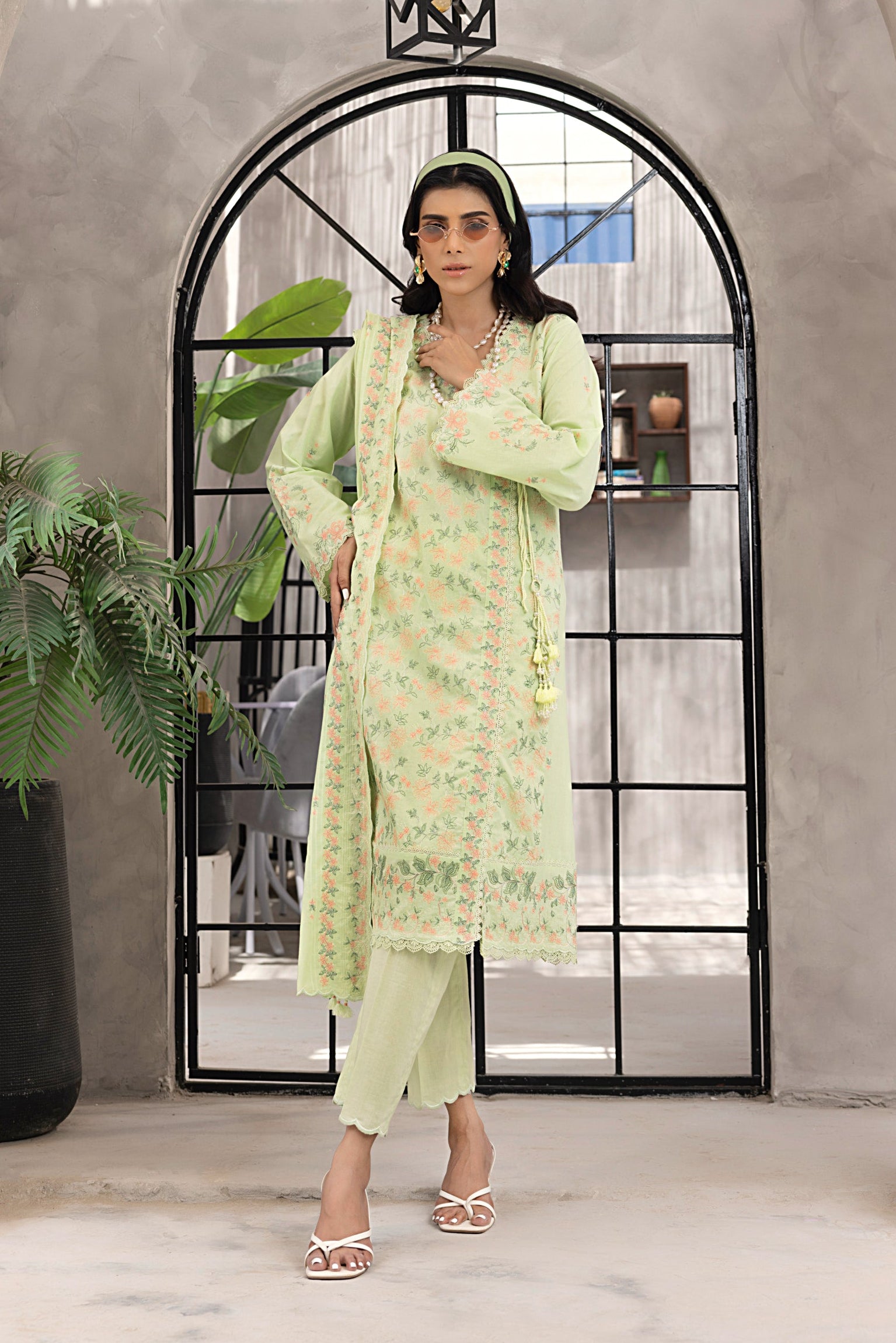 03 Piece Stitched Embroidered With Textured Embroidered Lawn Dupatta