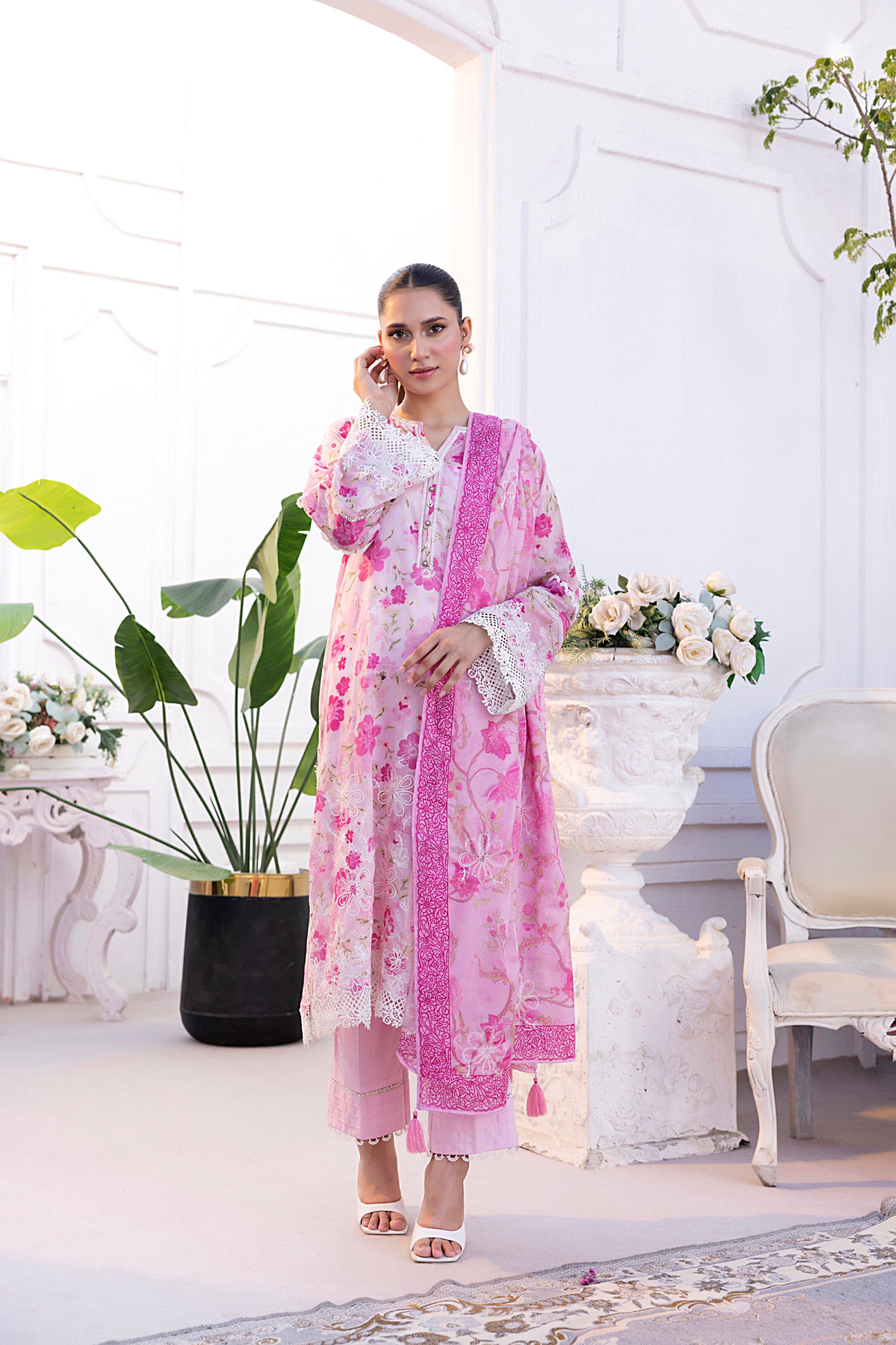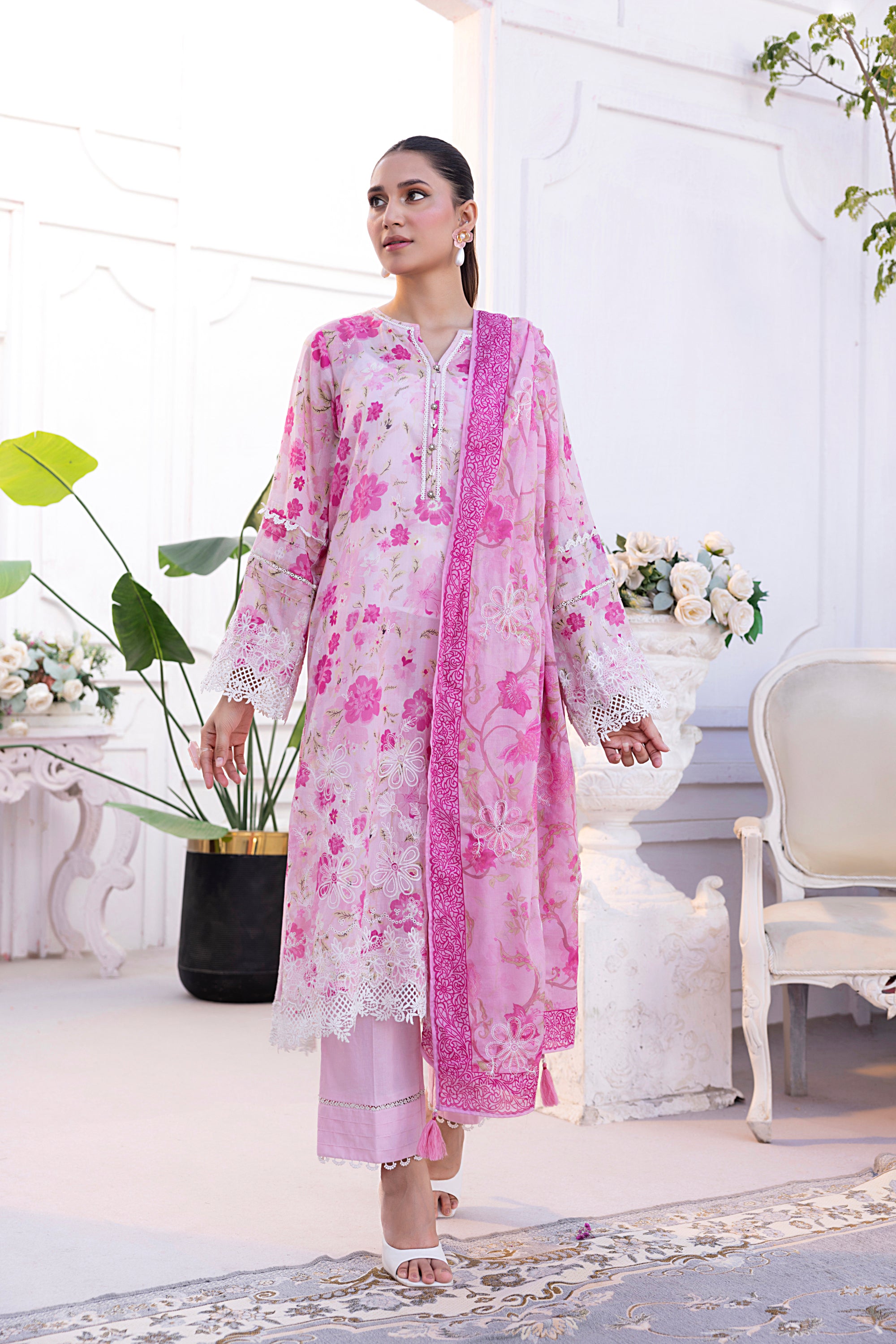 03 Piece Stitched Printed Embroidered with Printed Lawn Dupatta