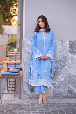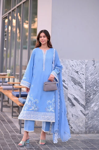 03 Piece Stitched Embroidered With Textured Embroidered Lawn Dupatta
