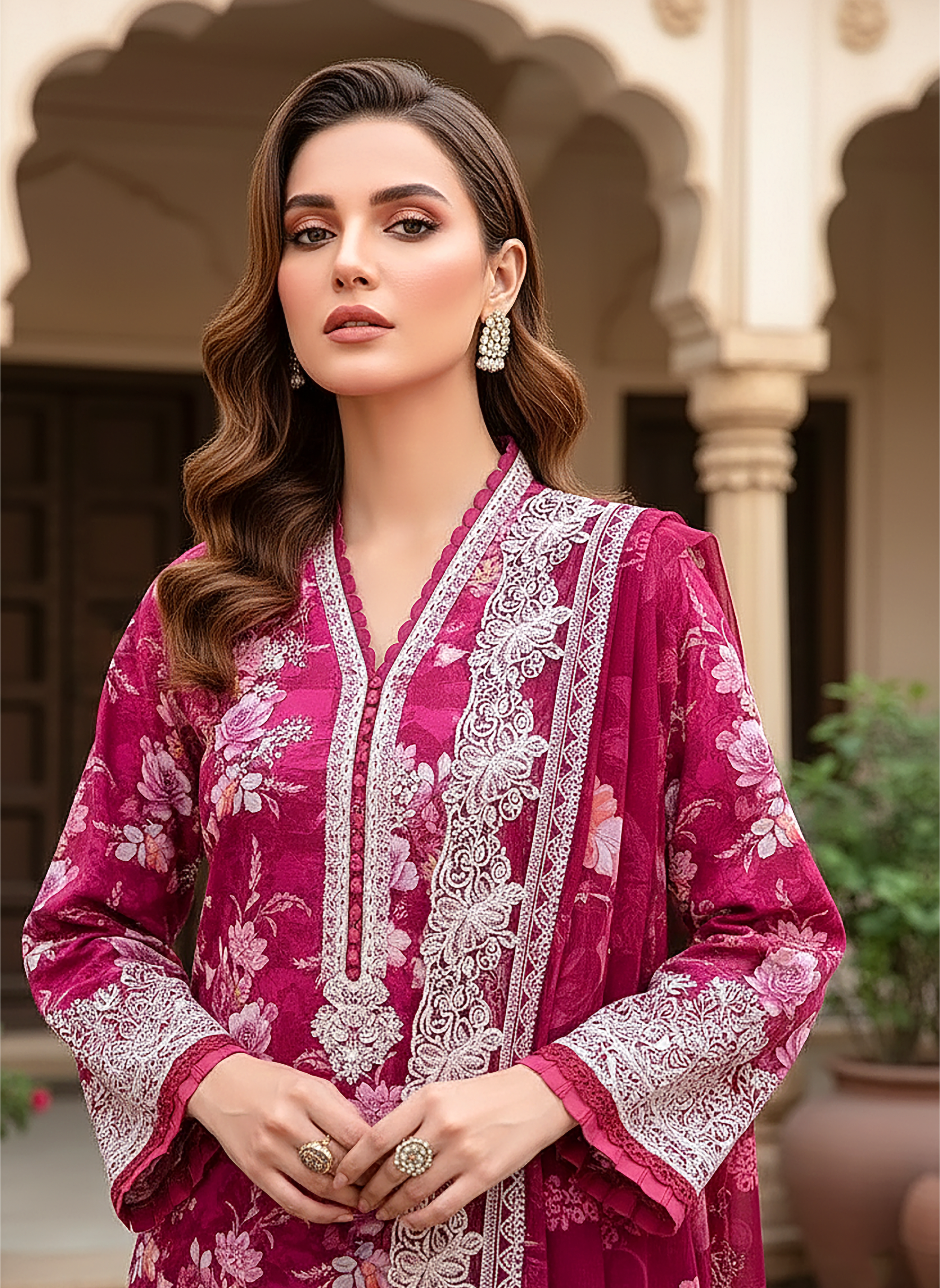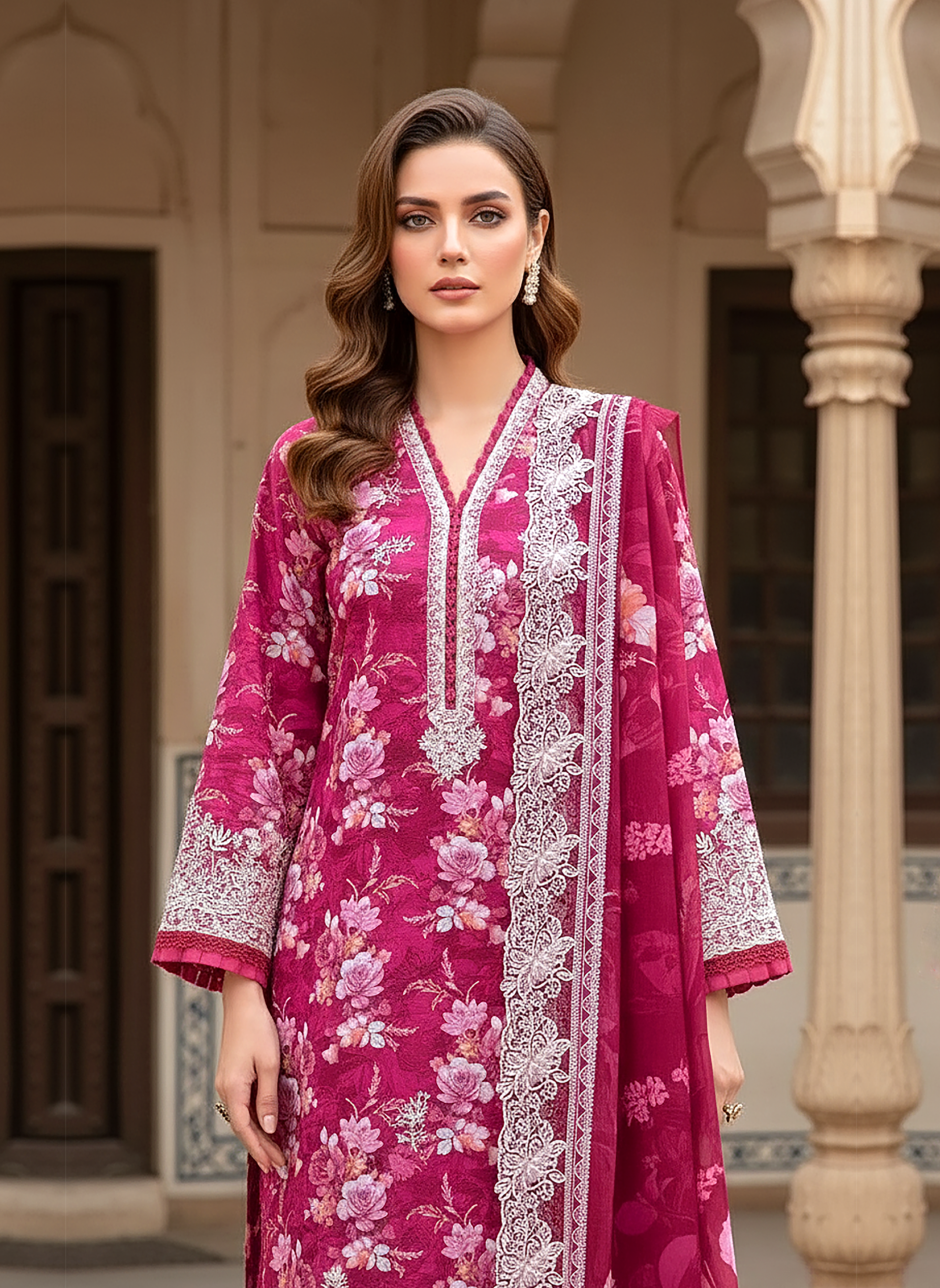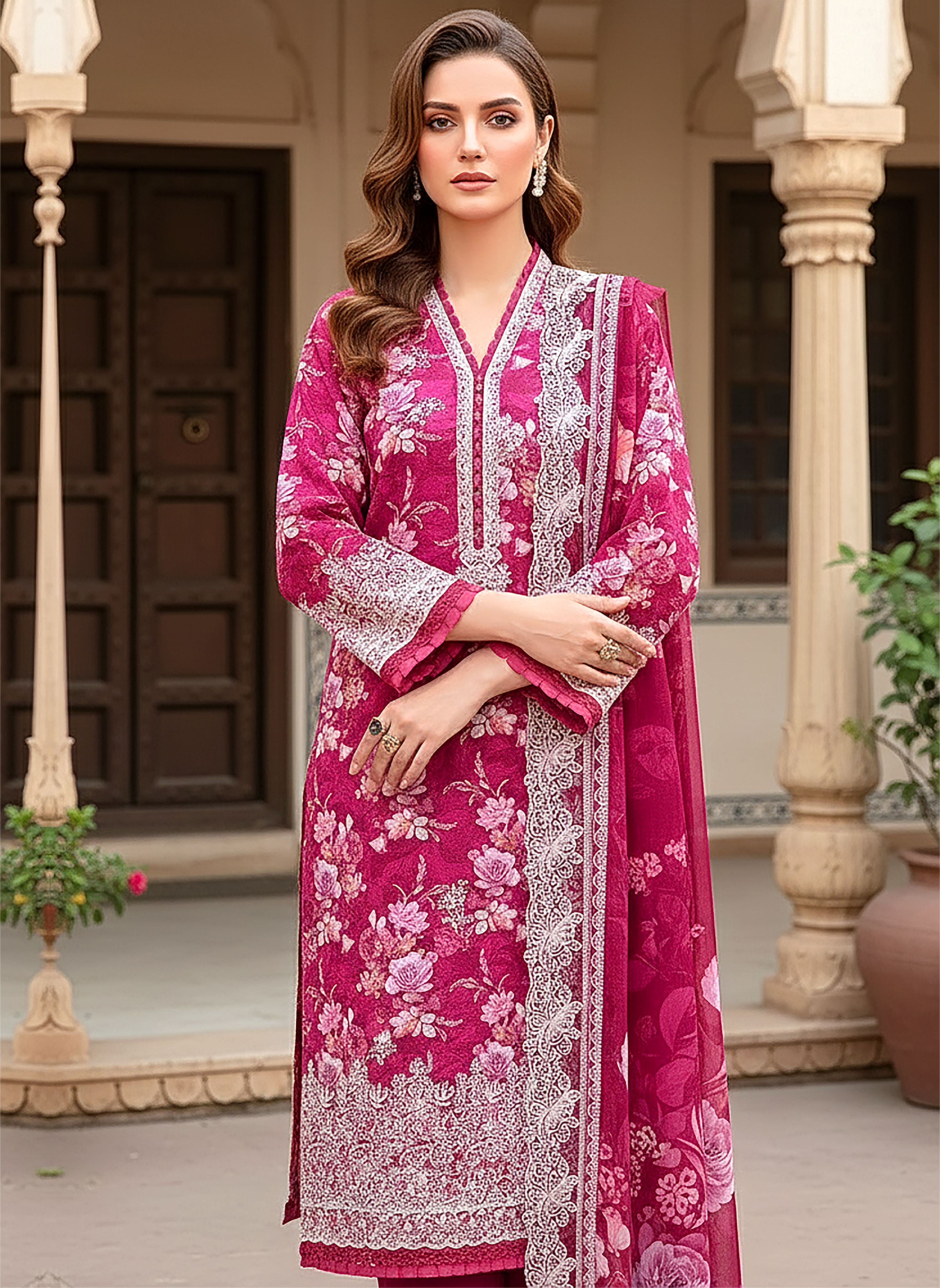 03 Piece Unstitched Embroidered with cutwork embroidered lawn dupatta