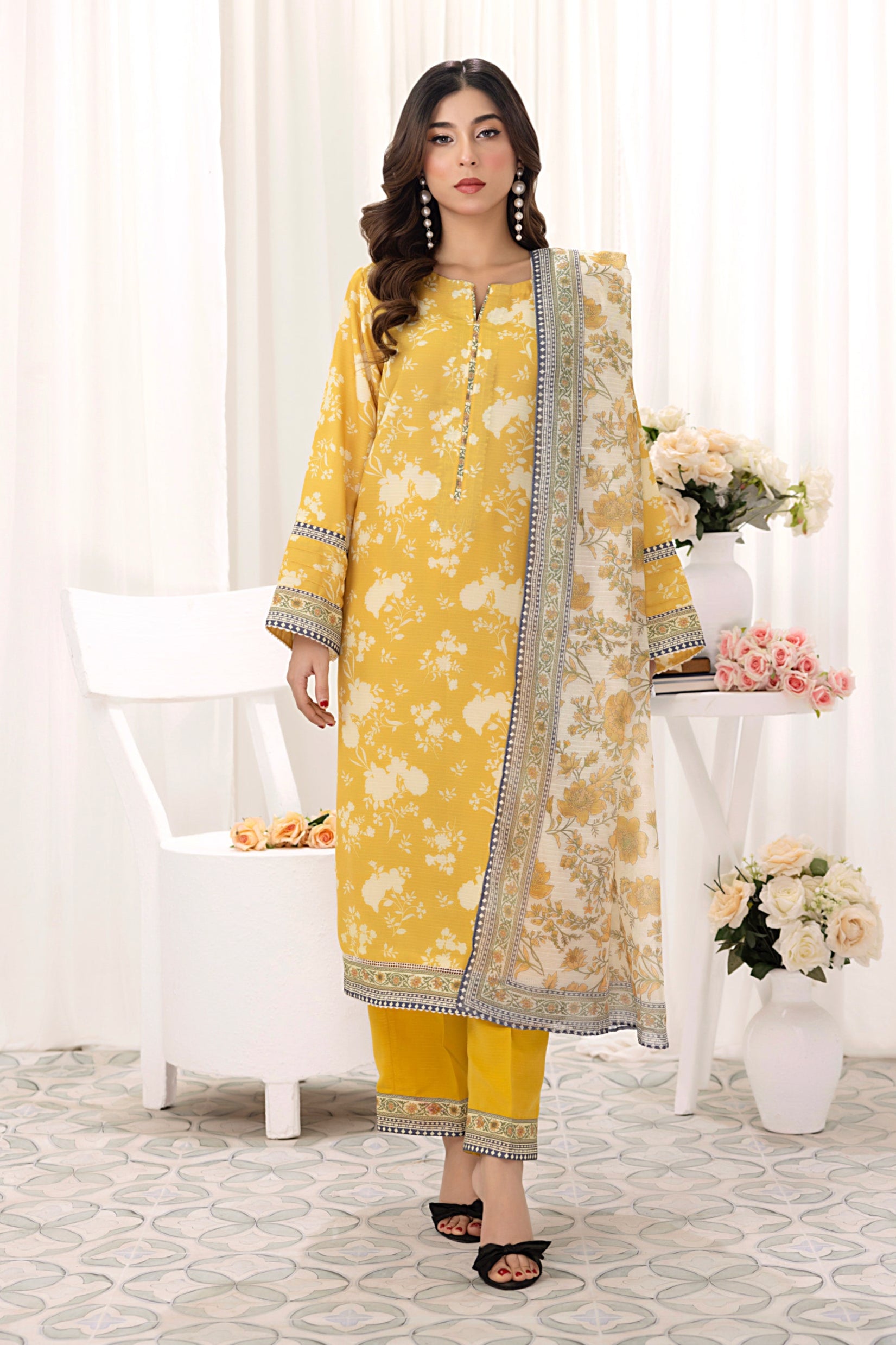 03 Piece Unstitched Fancy Textured Printed