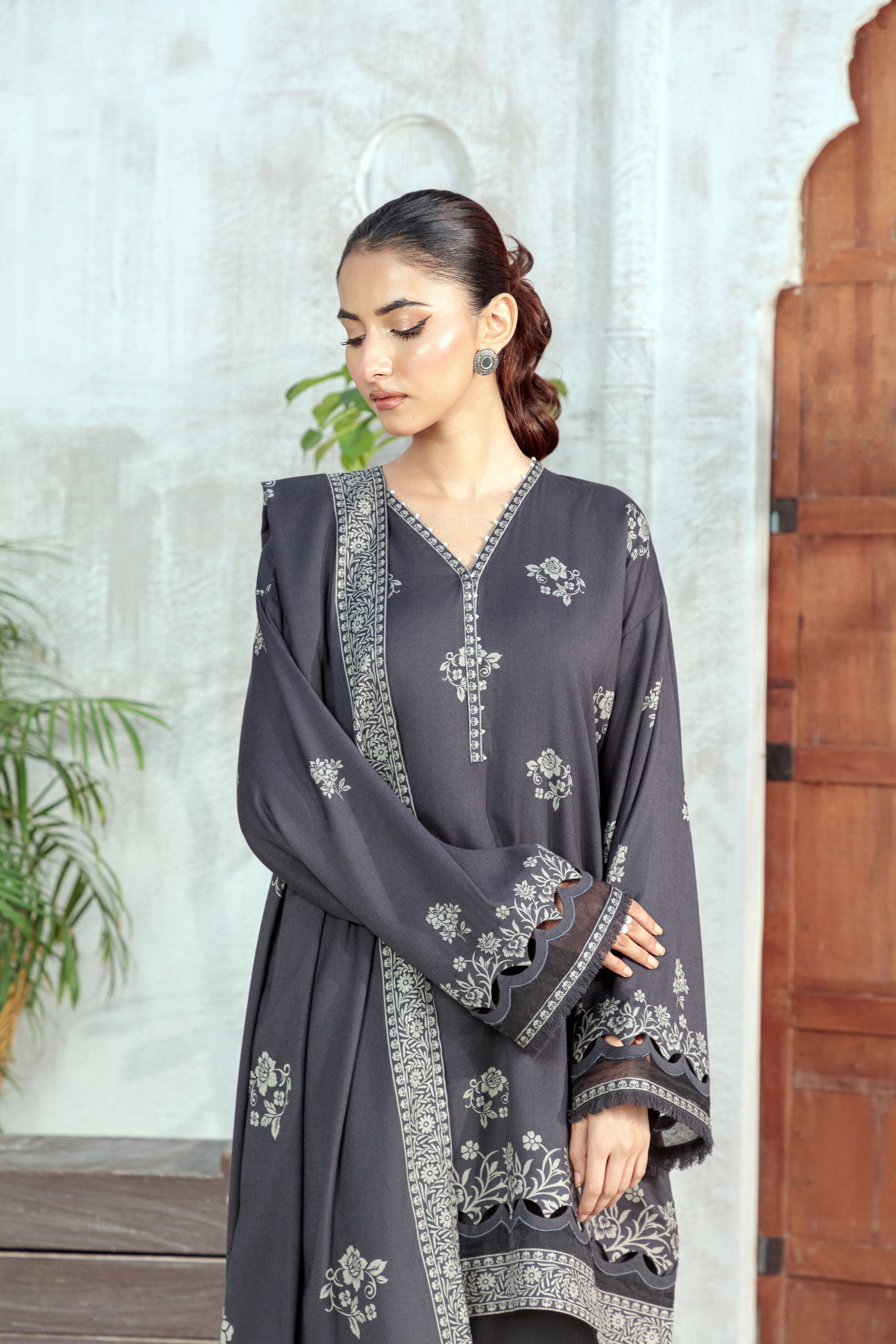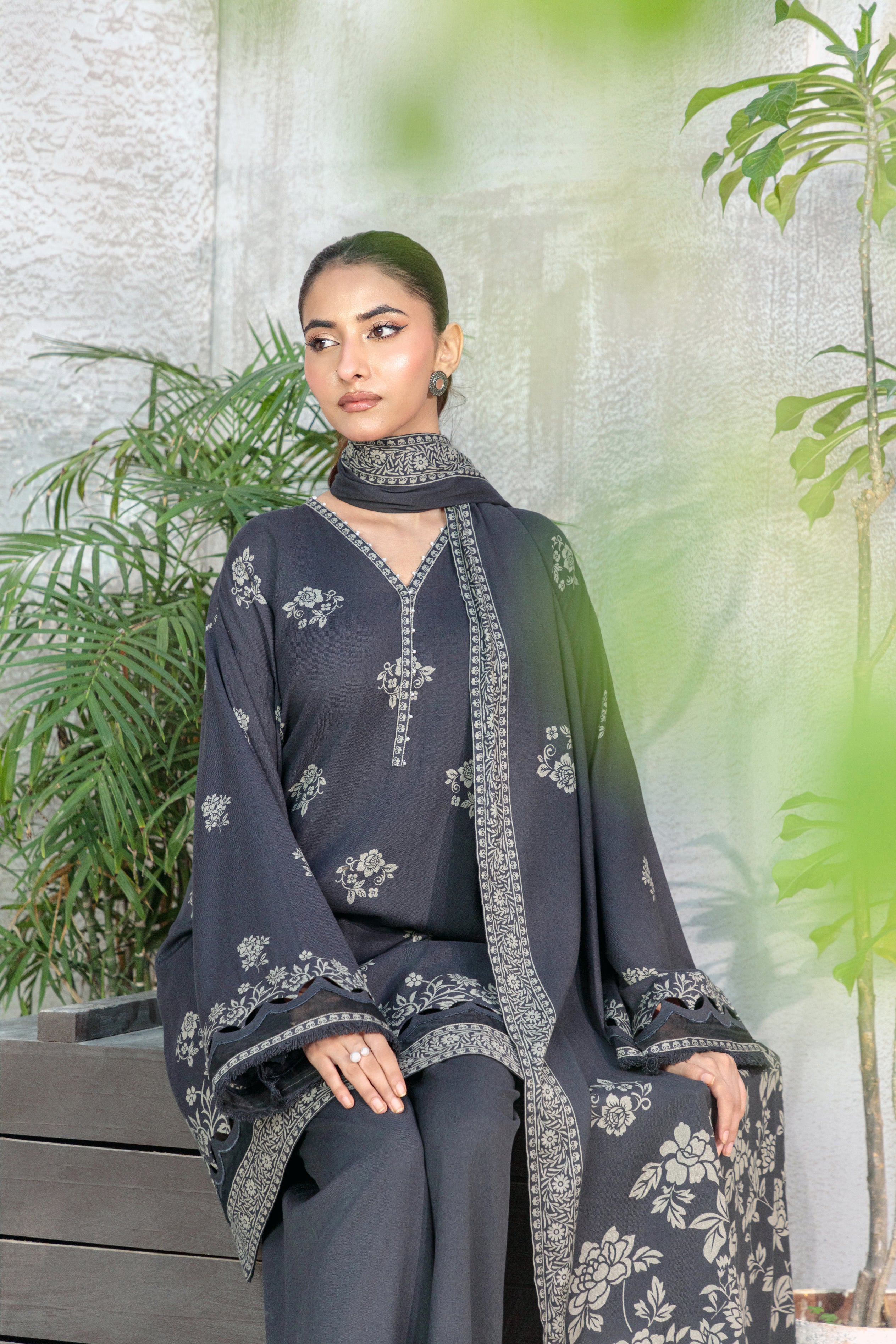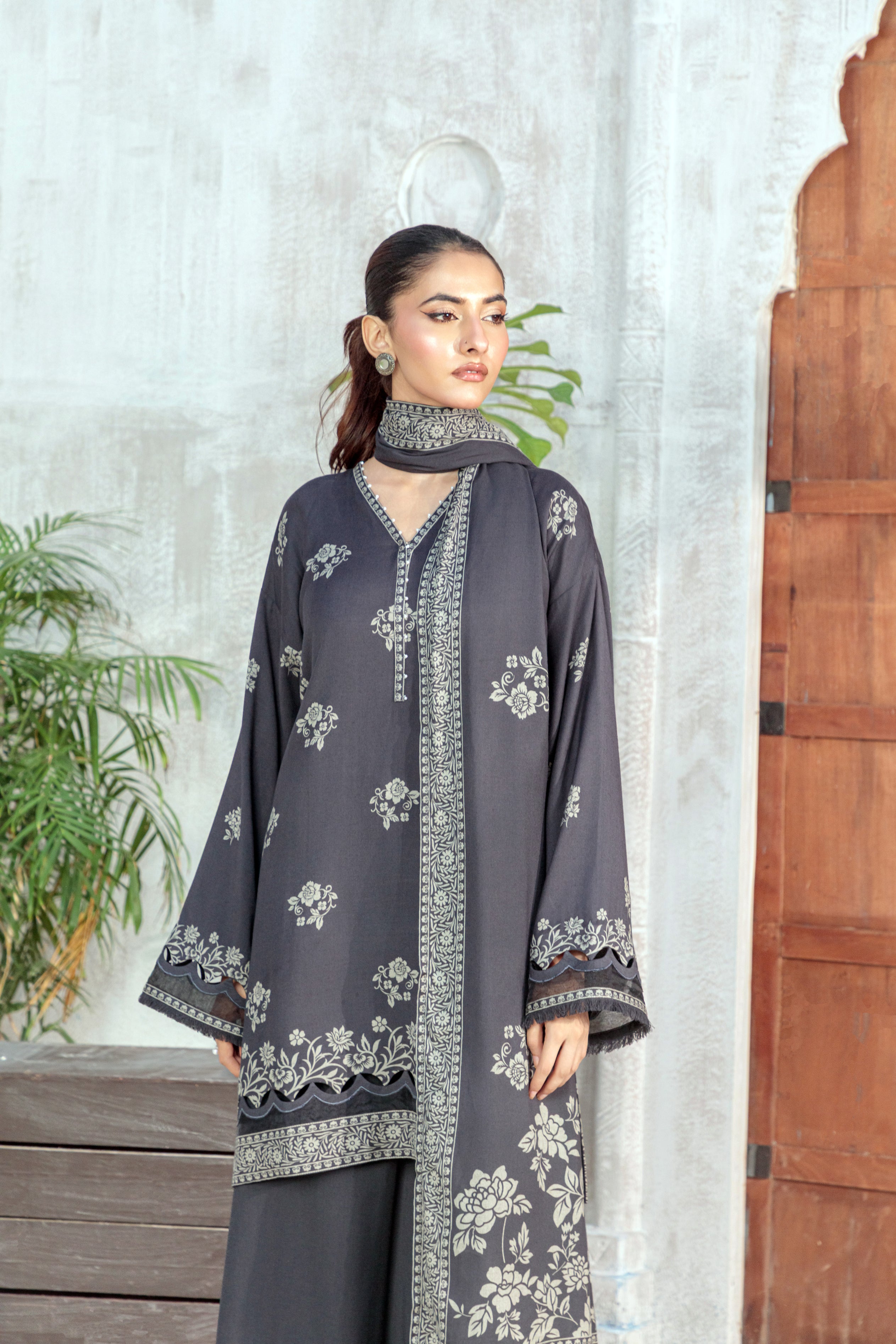 03 Piece Unstitched Pashmina Printed