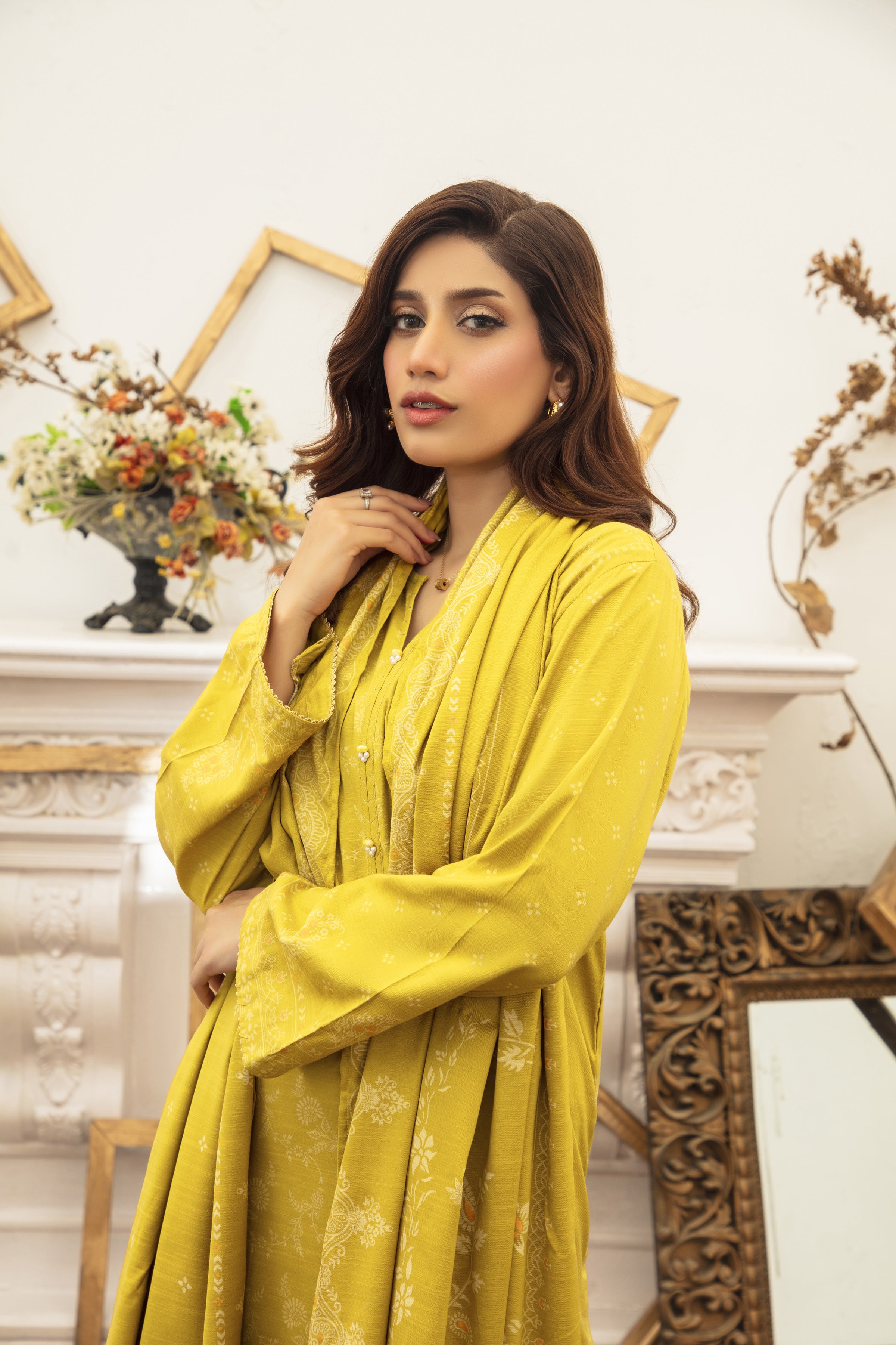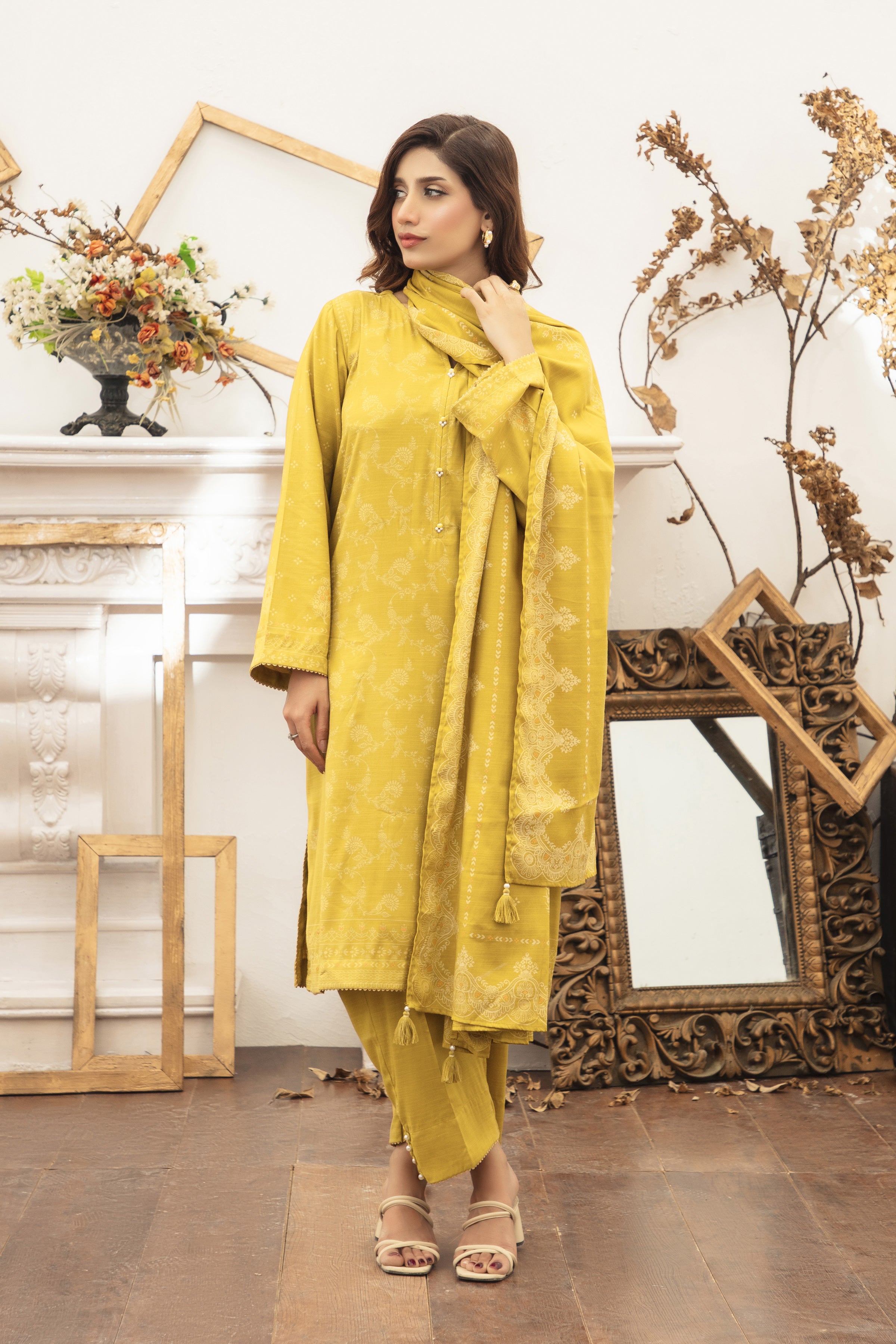 03 Piece Unstitched Textured Pearl Printed Marina