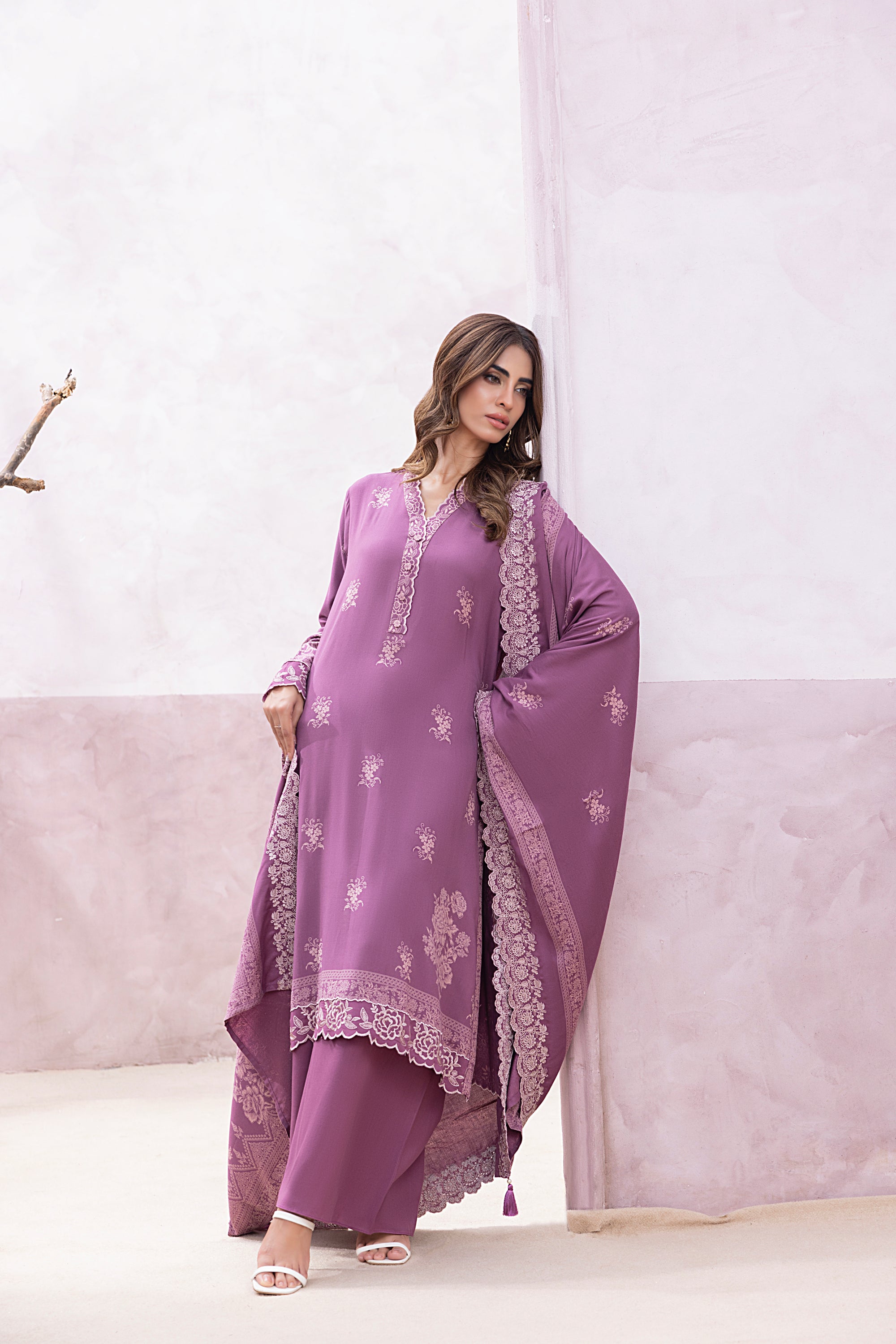 03 Piece Stitched Printed Embroidered Cashmi Wool