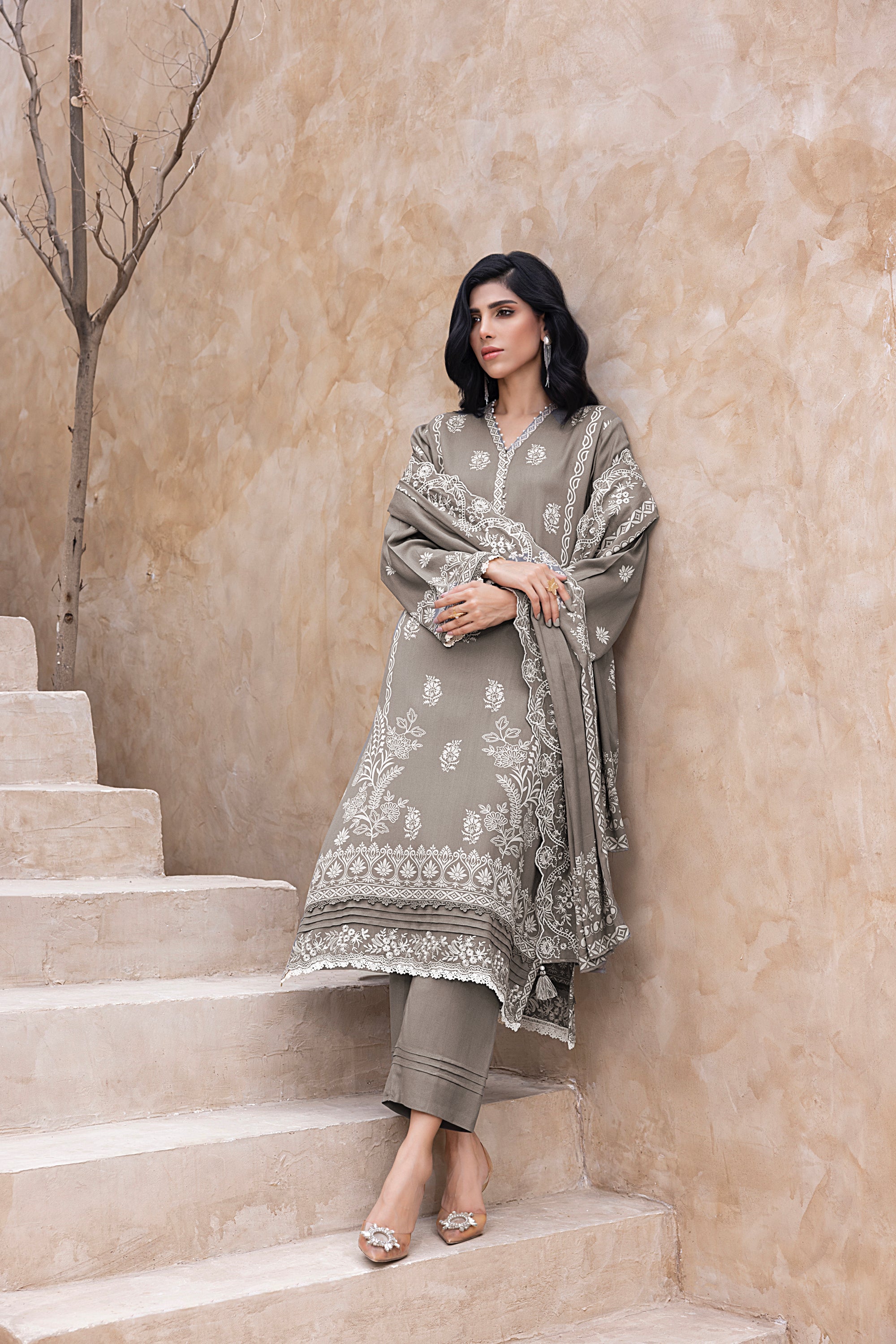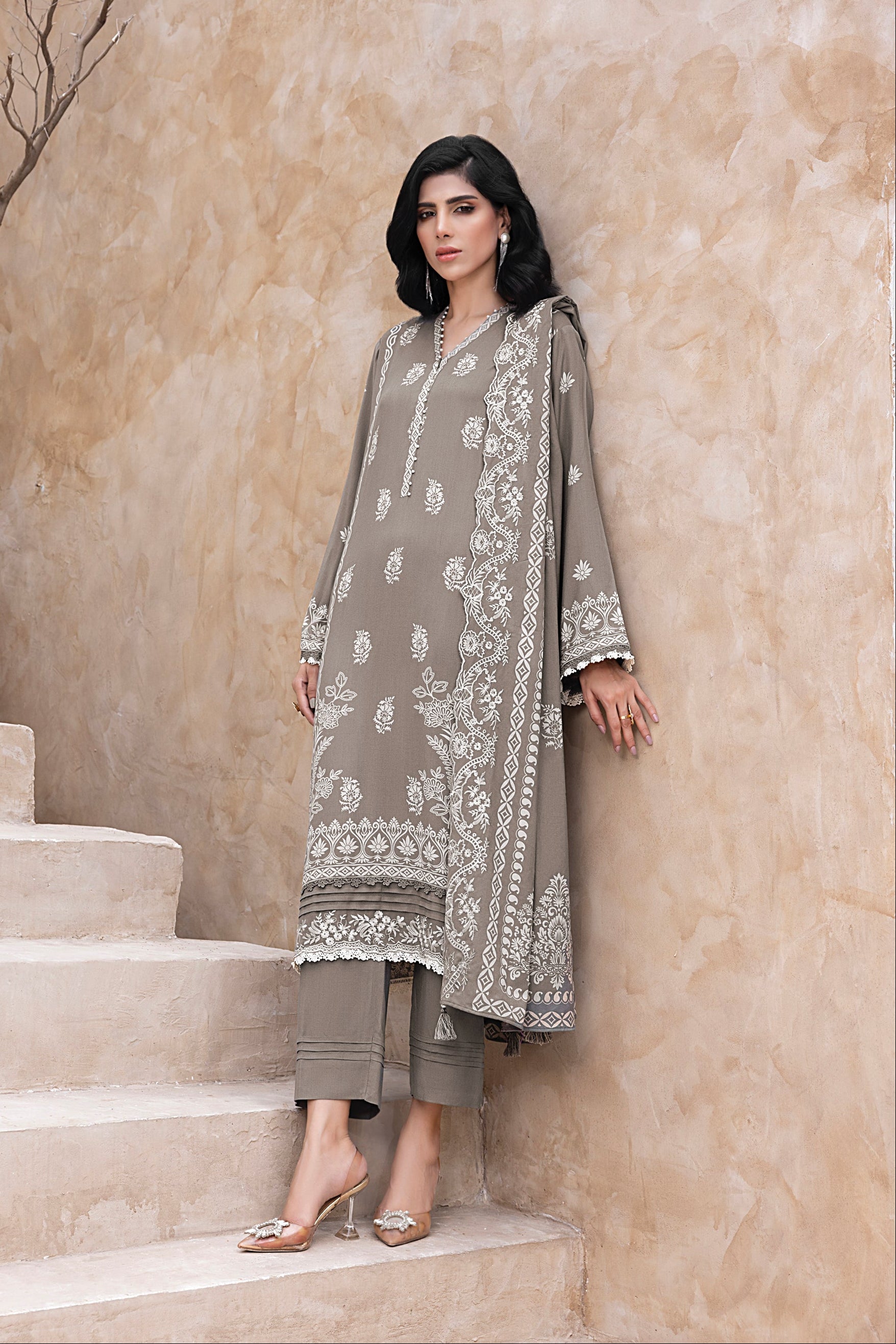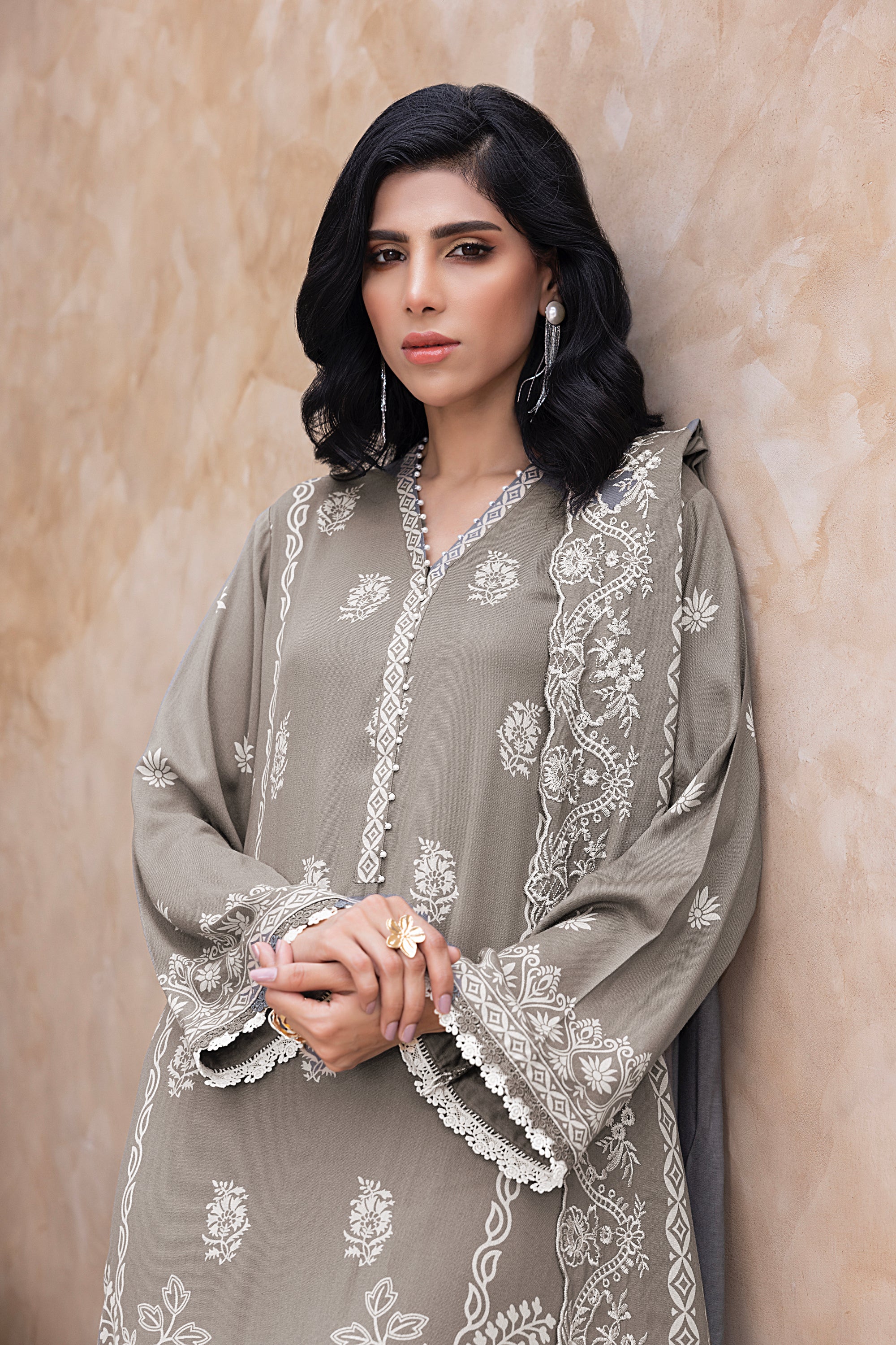 03 Piece Stitched Printed Embroidered Cashmi Wool