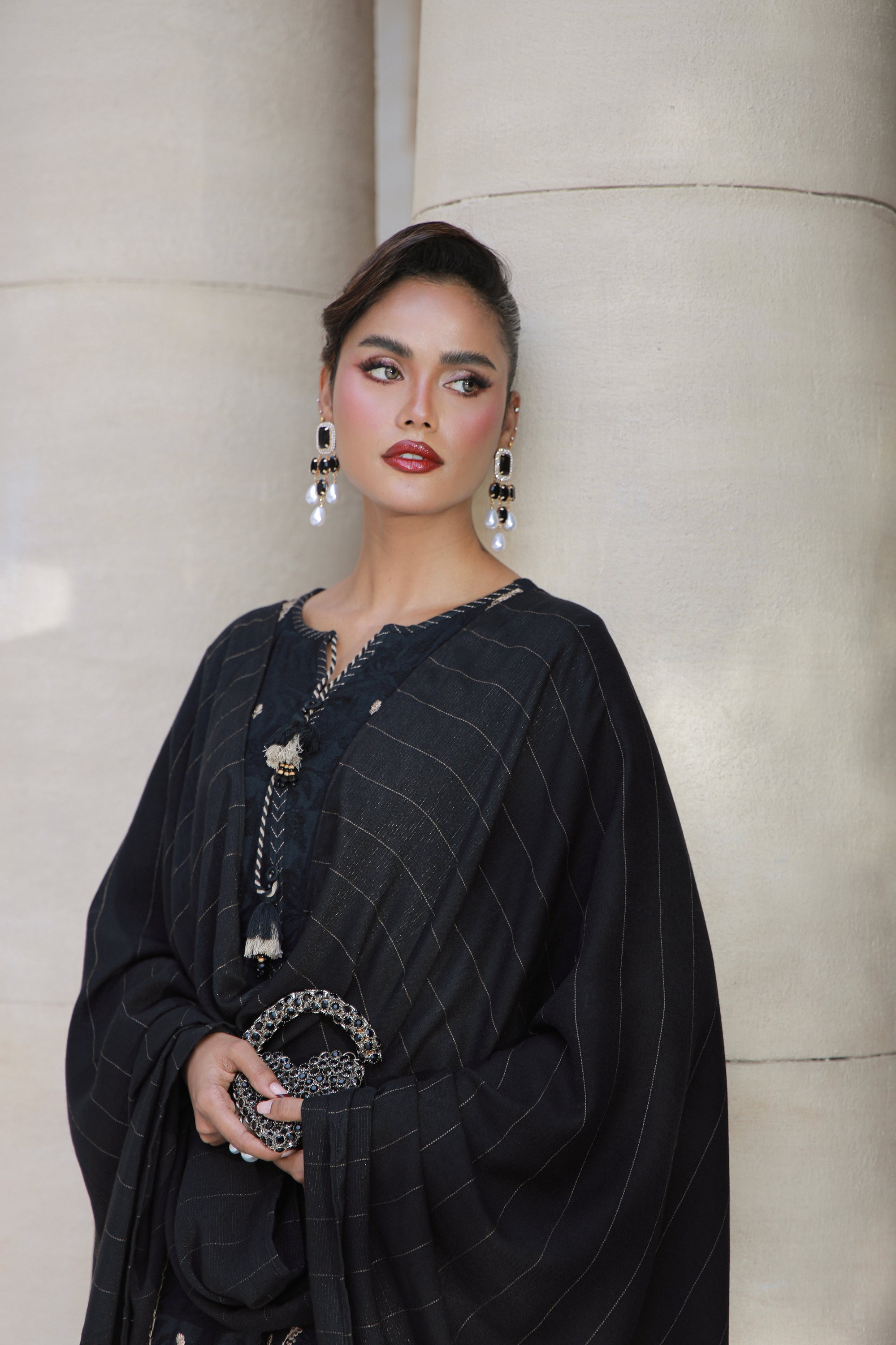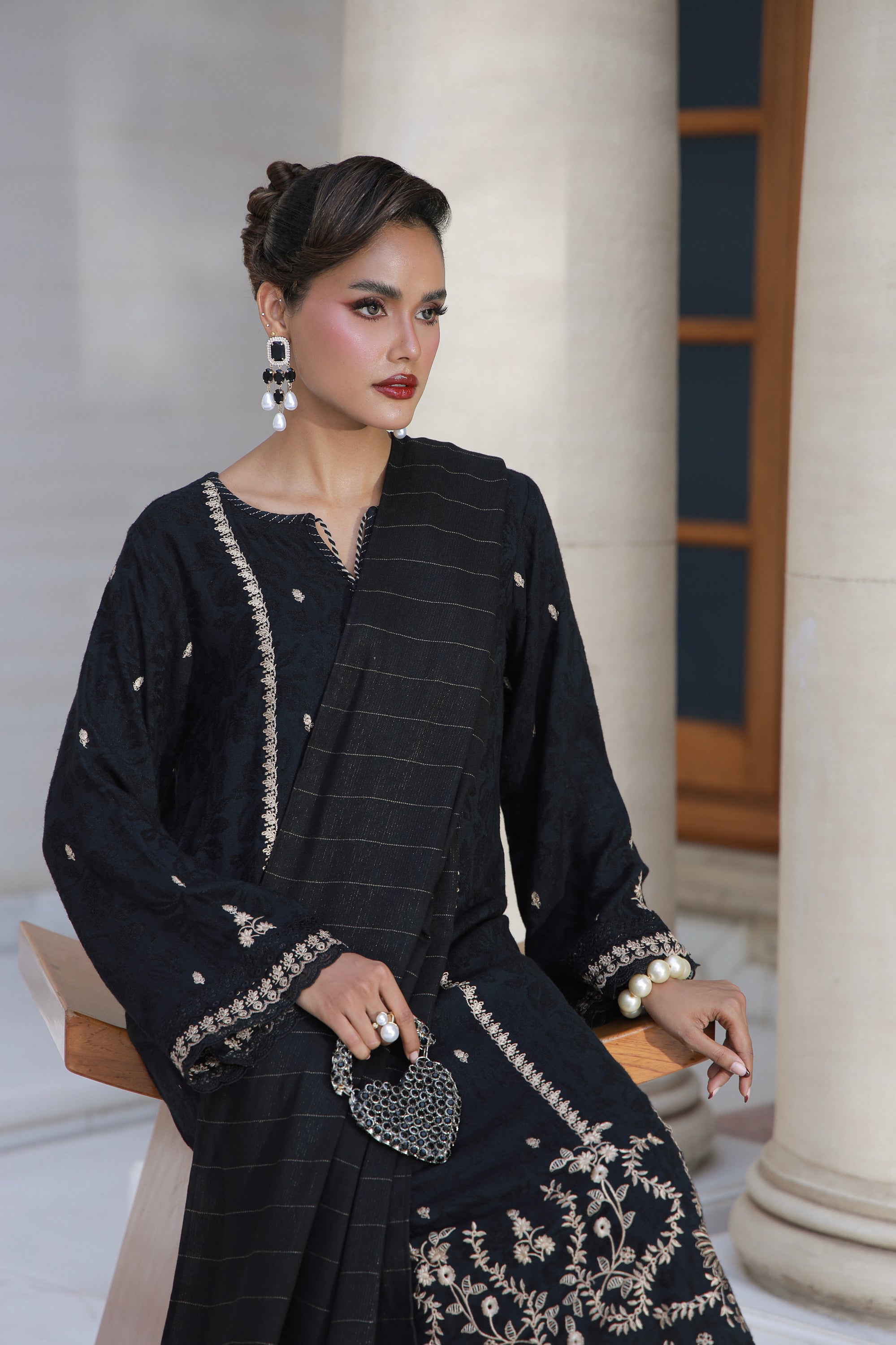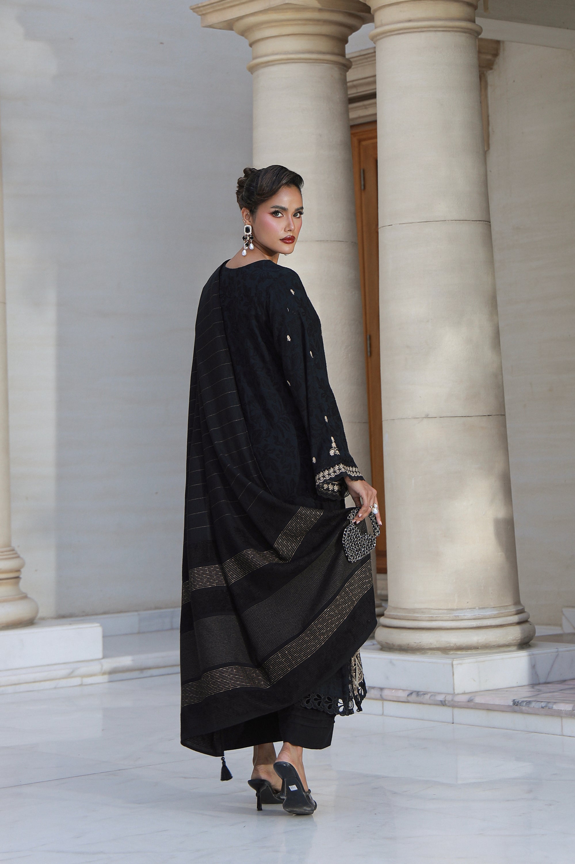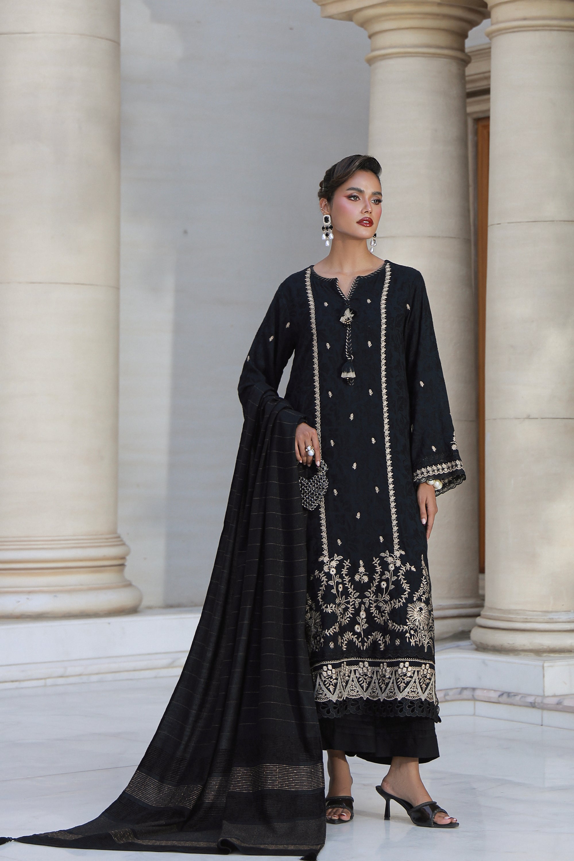 03 Piece Stitched Embroidered Fancy Jacquard Peach With Velvet