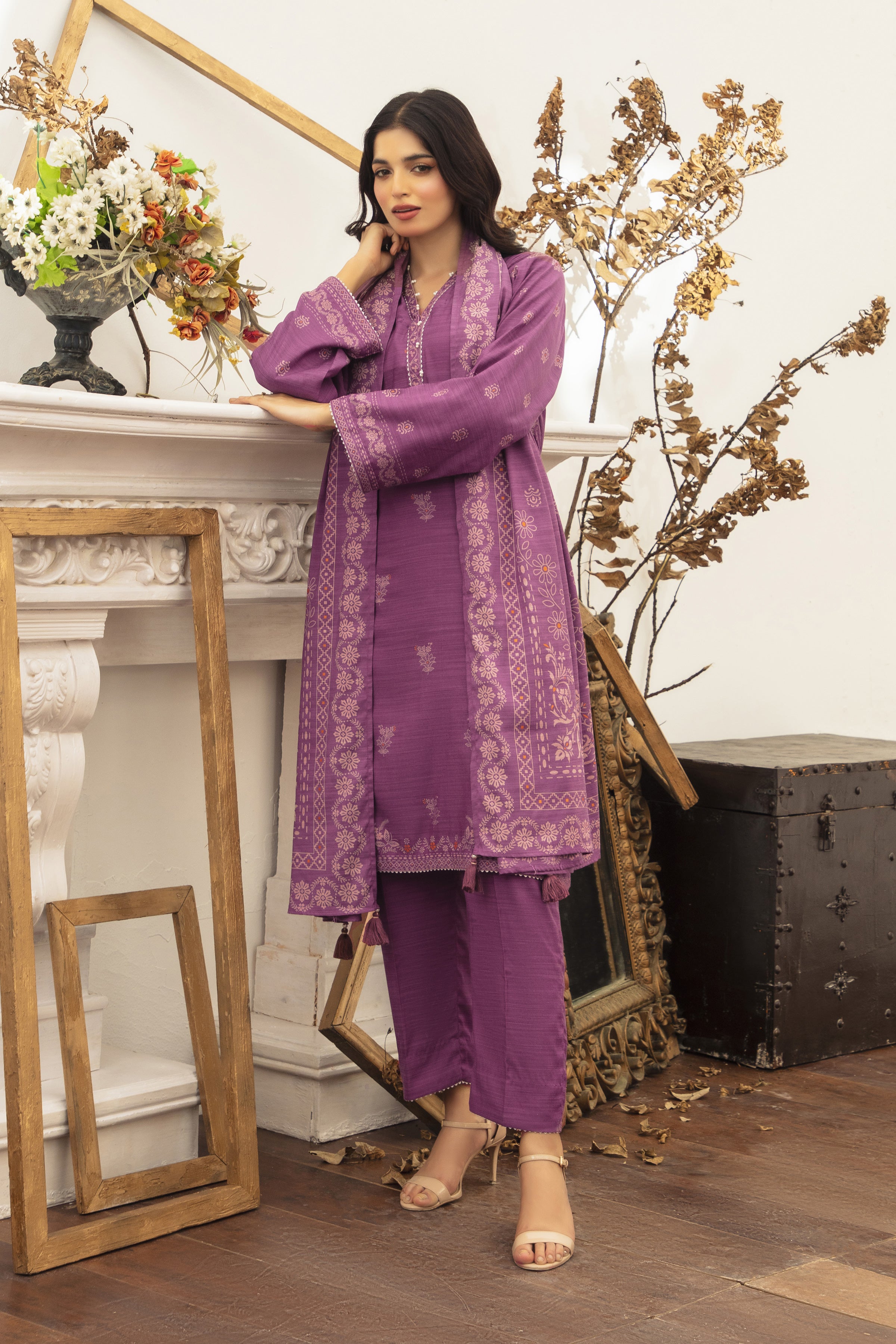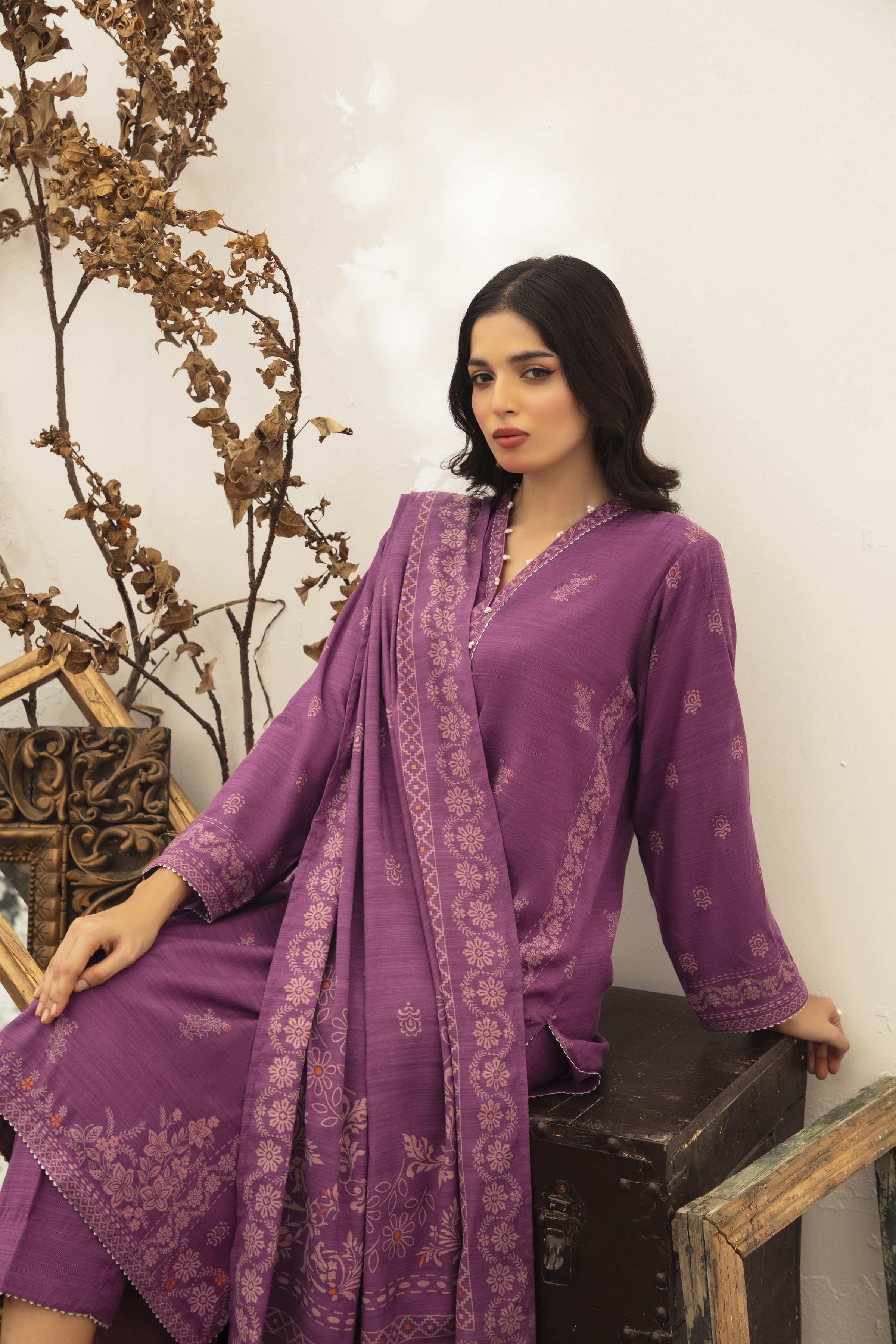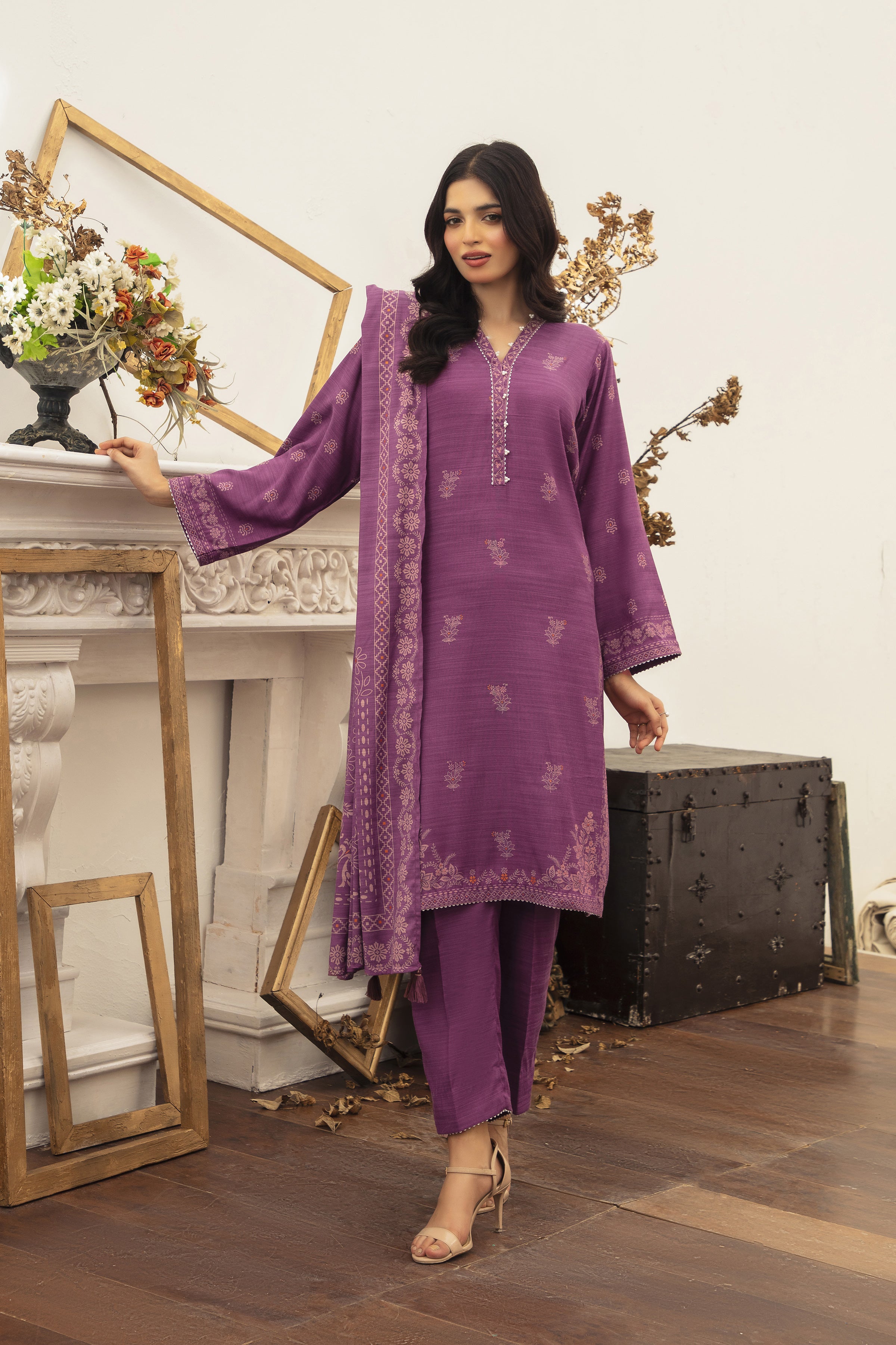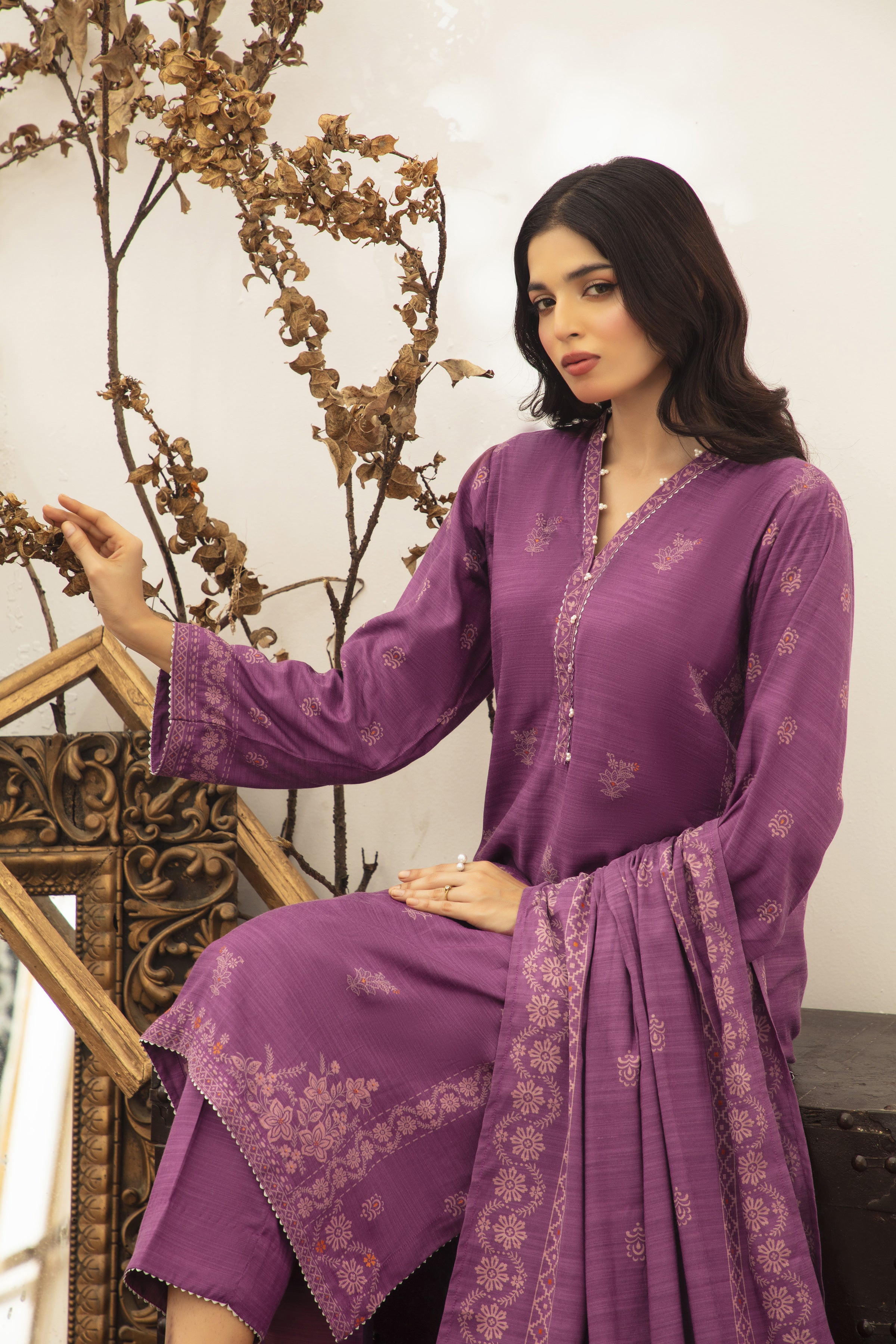 03 Piece Unstitched Textured Pearl Printed Marina