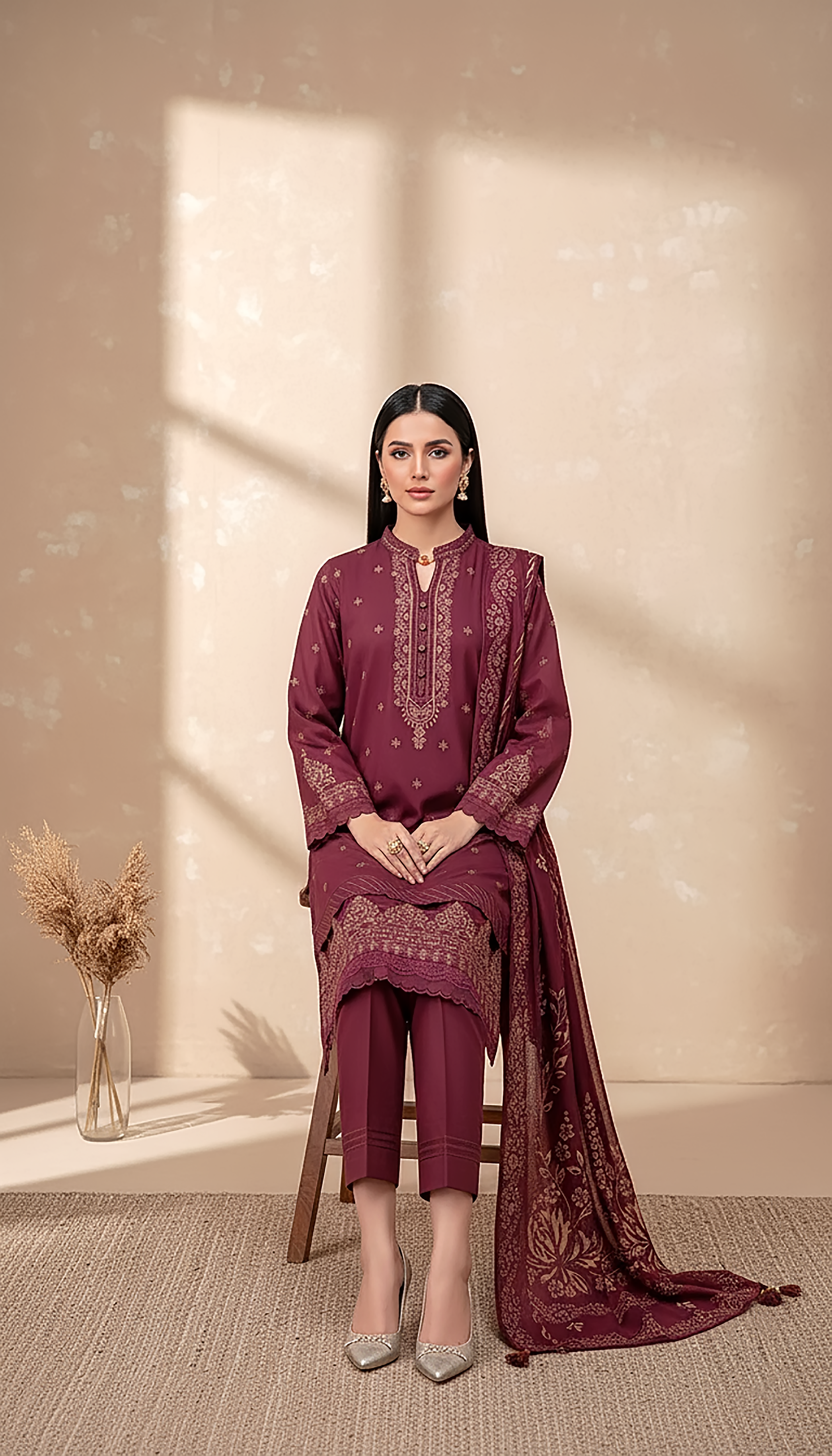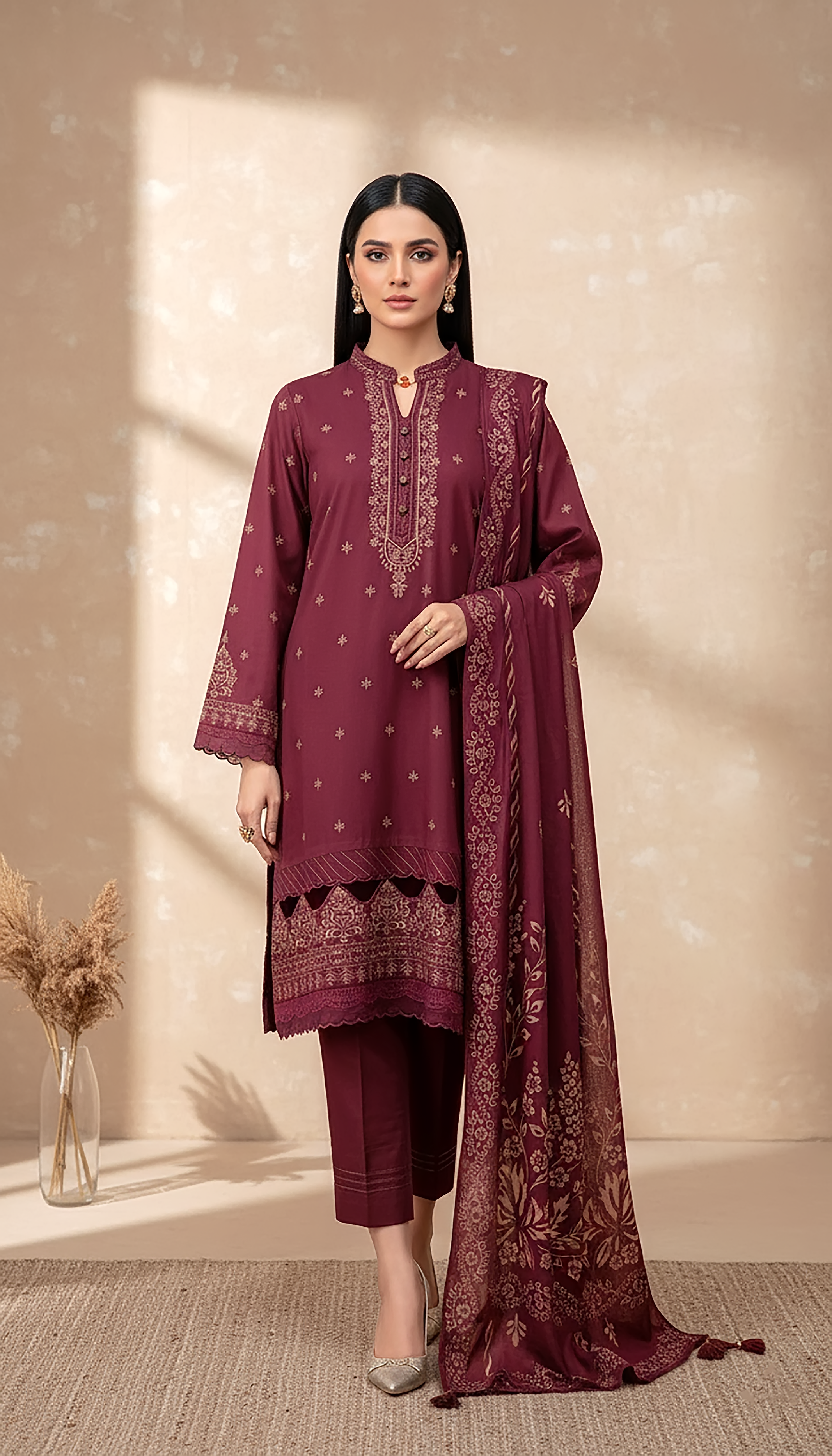 03 Piece Unstitched Cashmi Vool Printed