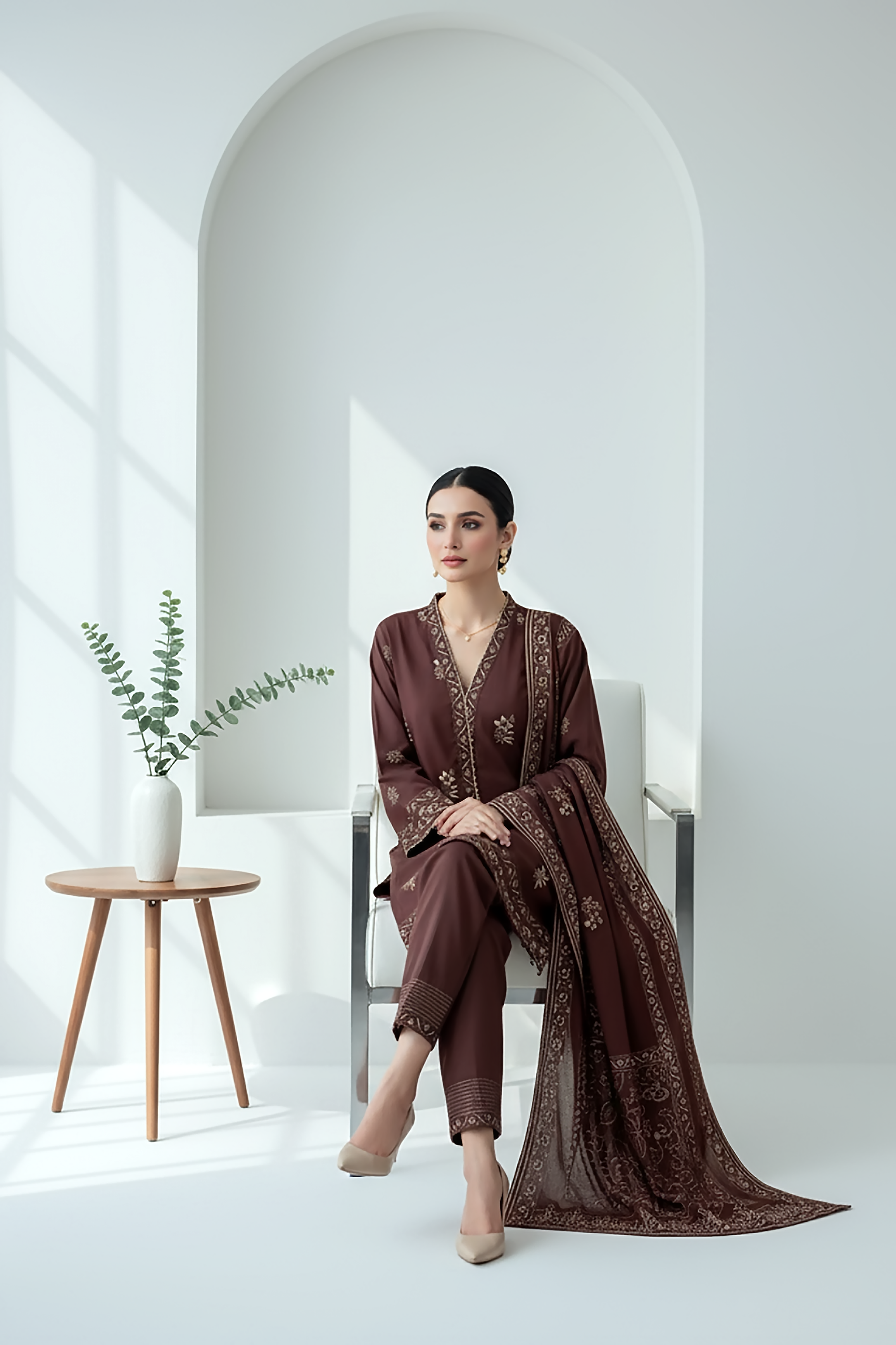 03 Piece Unstitched Textured Heavy Weight Printed Marina