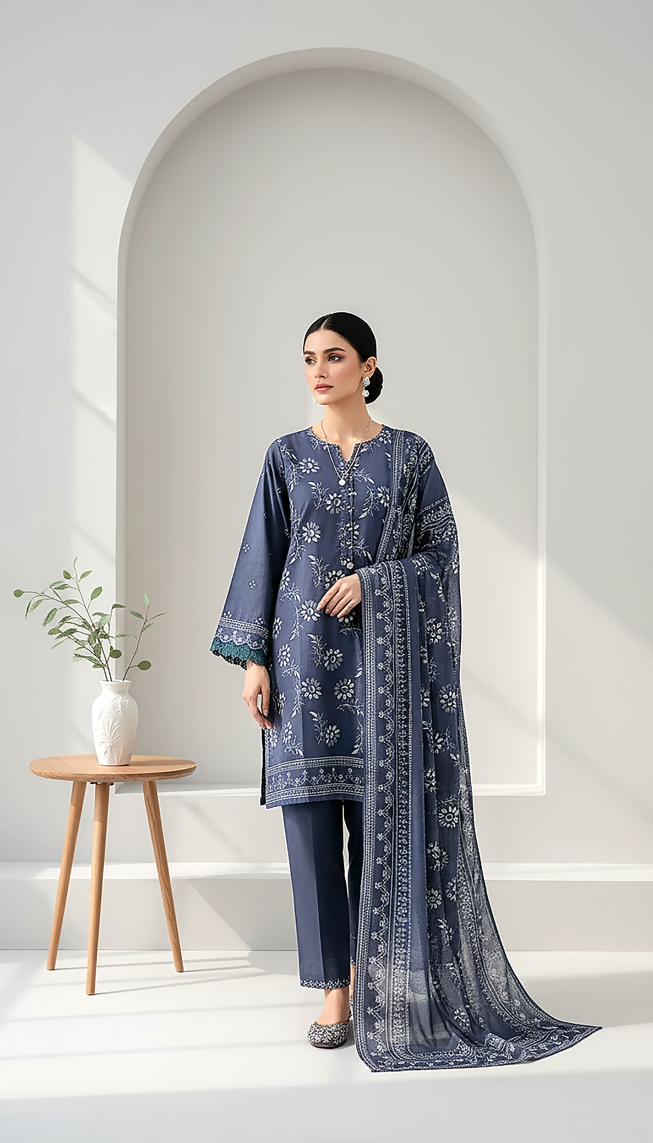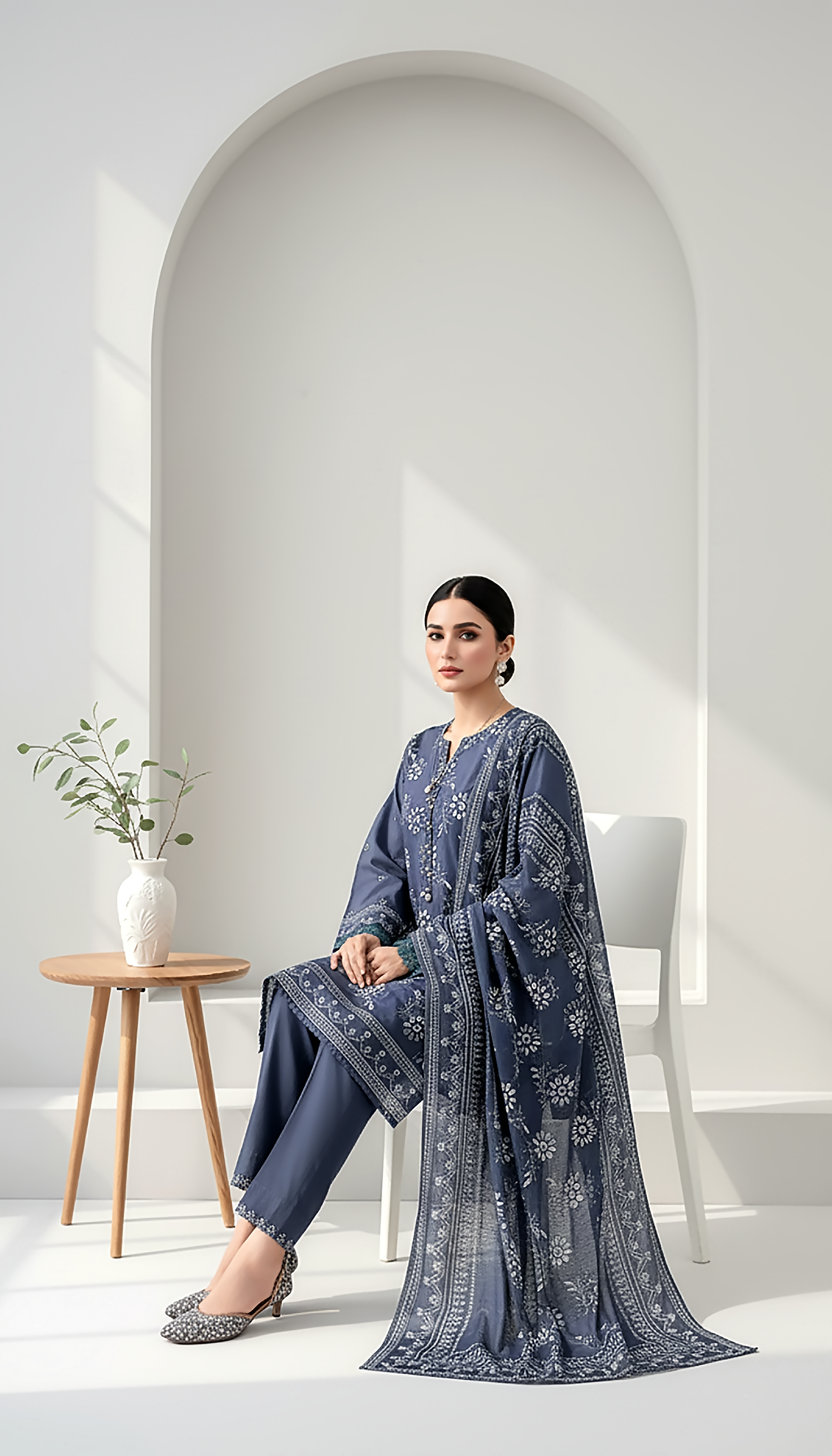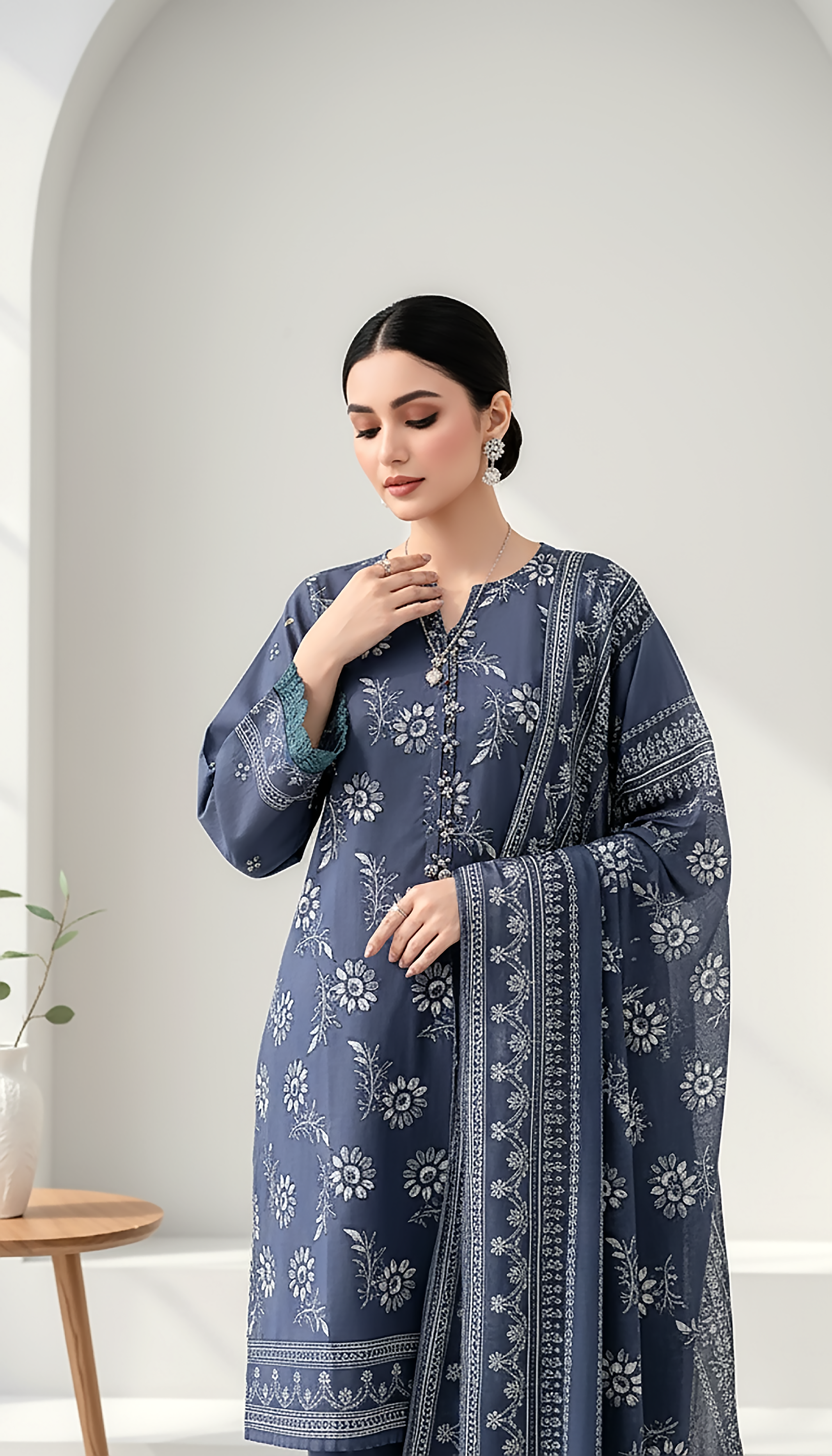 03 Piece Unstitched Textured Heavy Weight Printed Marina
