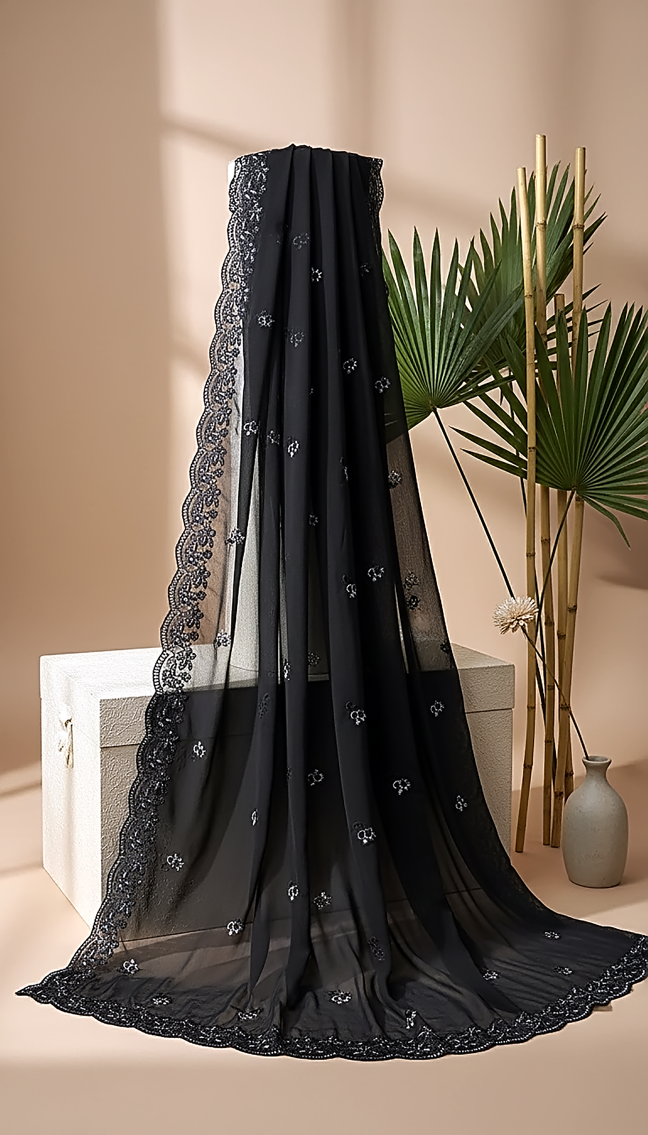 01 Piece Ready to Wear Embroidered Chiffon Dupatta